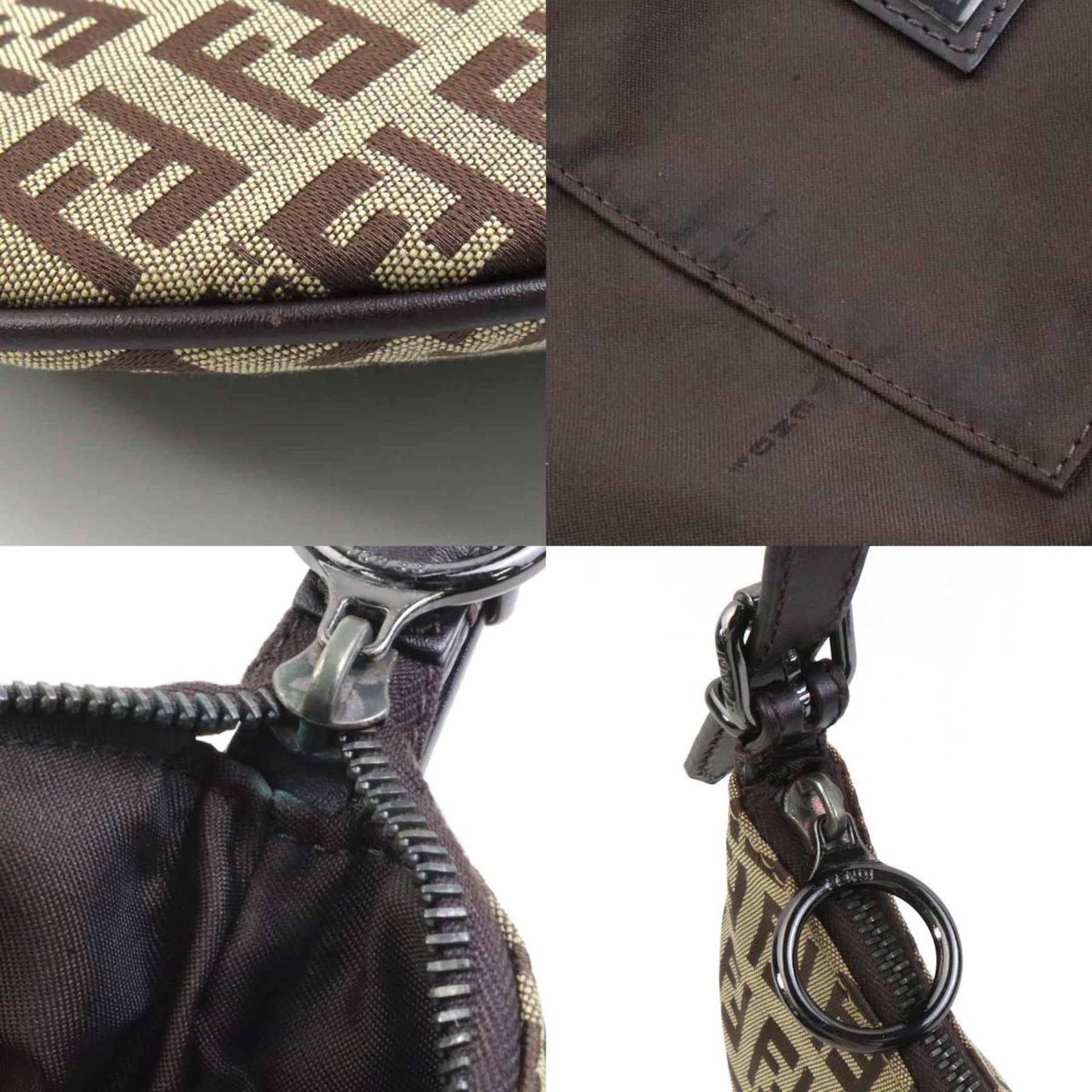 Fendi Zucchino Canvas and Leather Shoulder Bag, Brown, Women\'s, e60673i