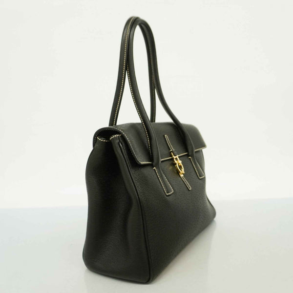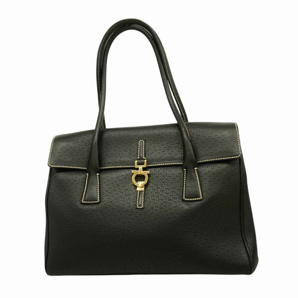 Salvatore Ferragamo Gancini Leather Tote Bag, Black, Women\'s