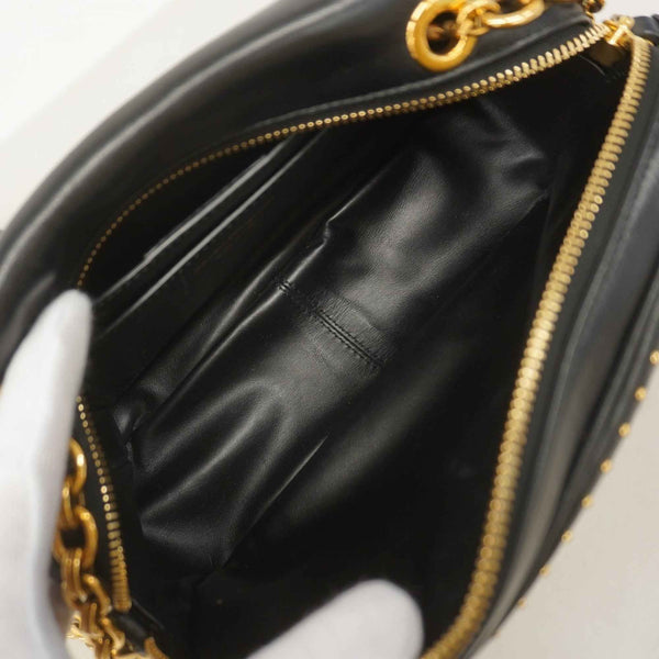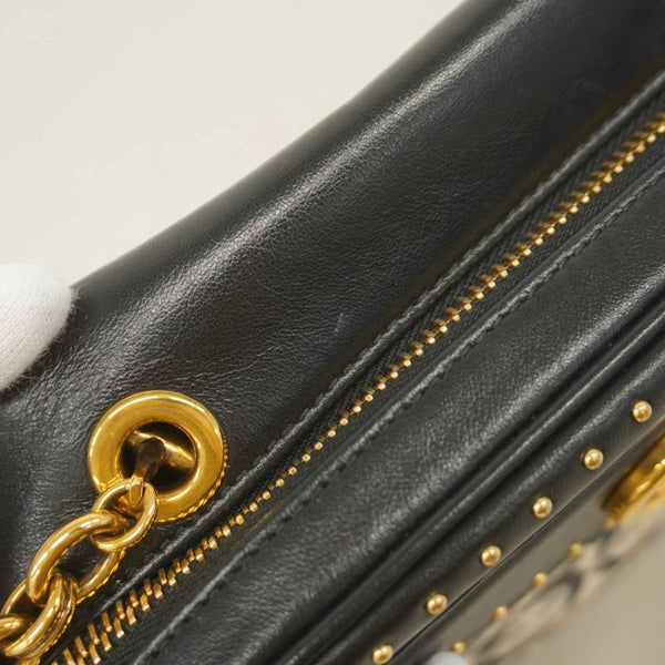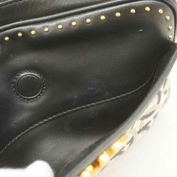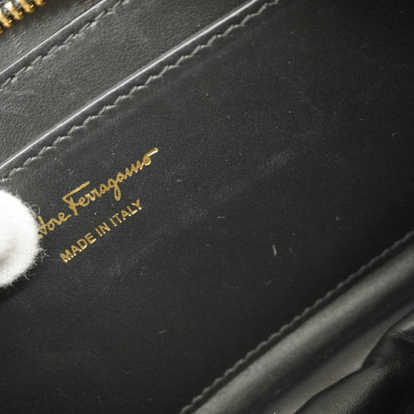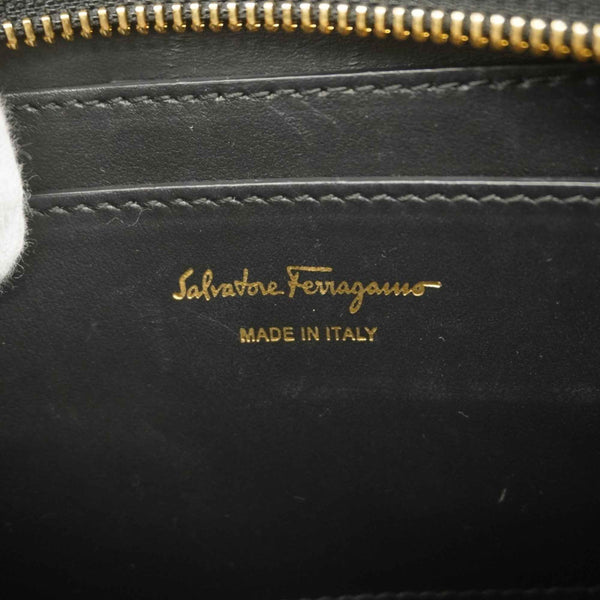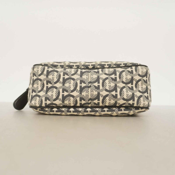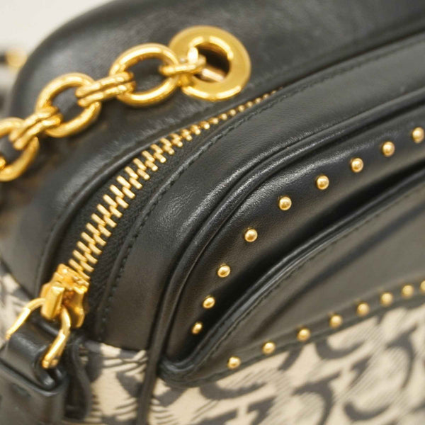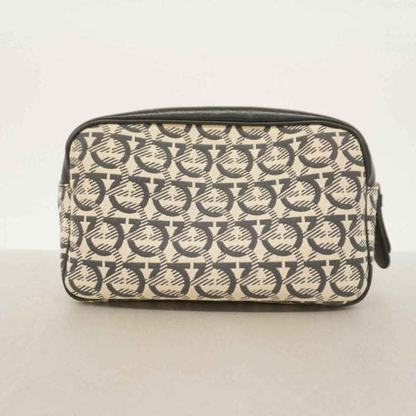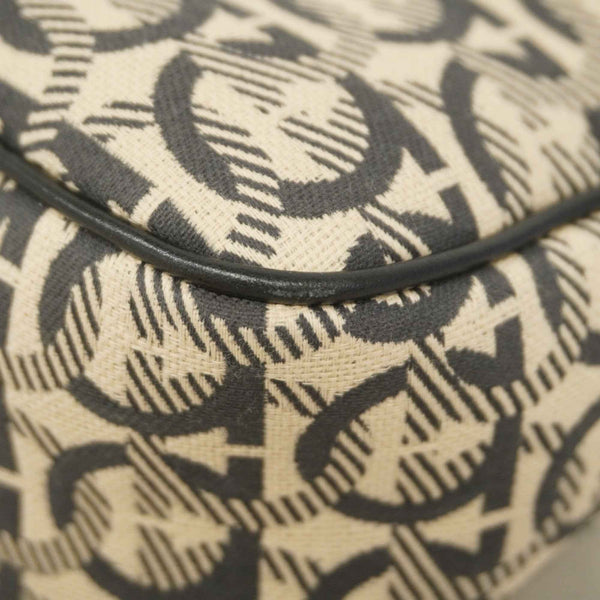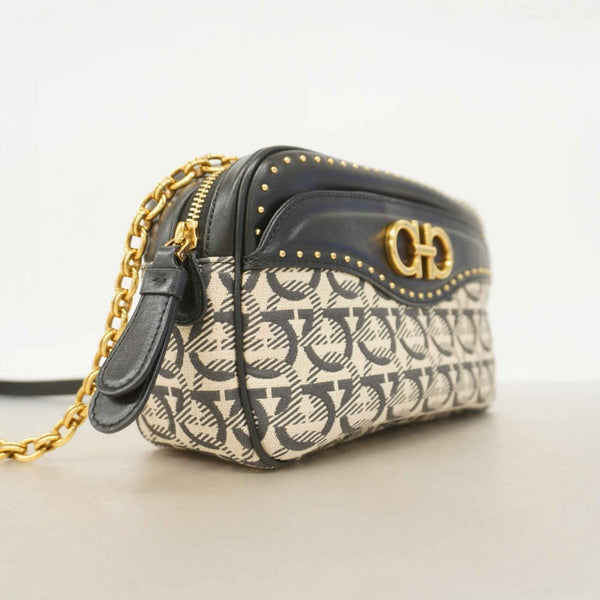 Salvatore Ferragamo Gancini Shoulder Bag in Leather and Canvas, Black Beige, Women\'s