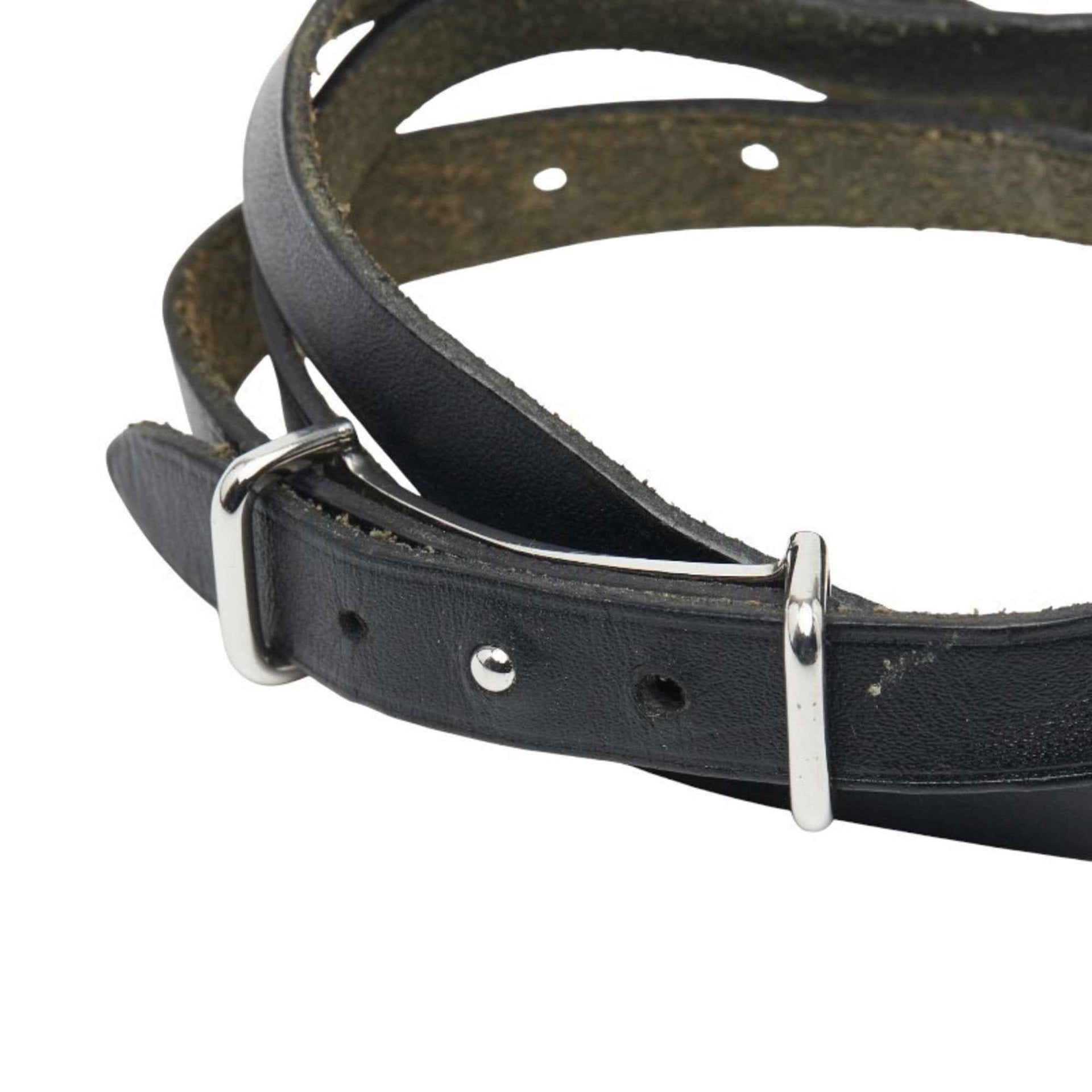 Hermes Api II Bracelet in Black and Silver Leather Metal for Women