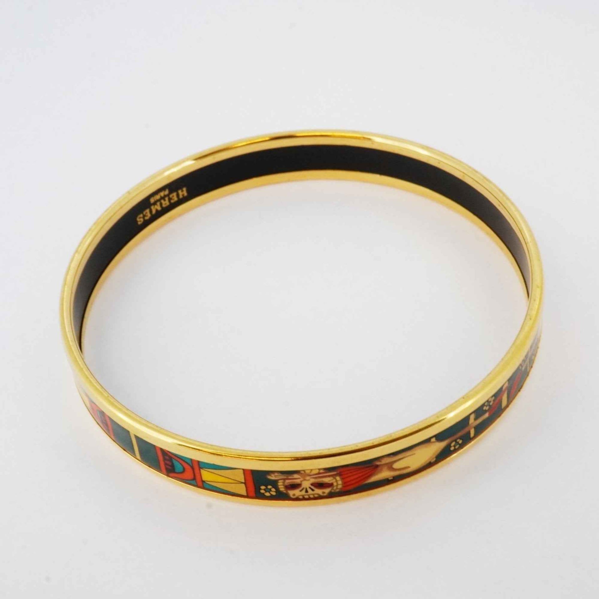 Hermes bangle, enamel PM, GP plated, cloisonné, gold, green, multicolor, women\'s