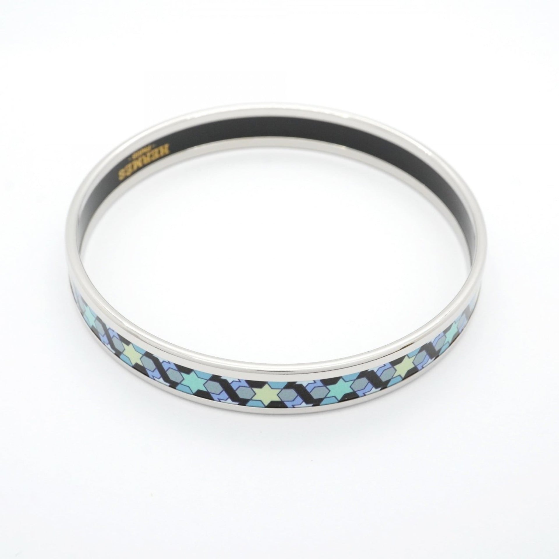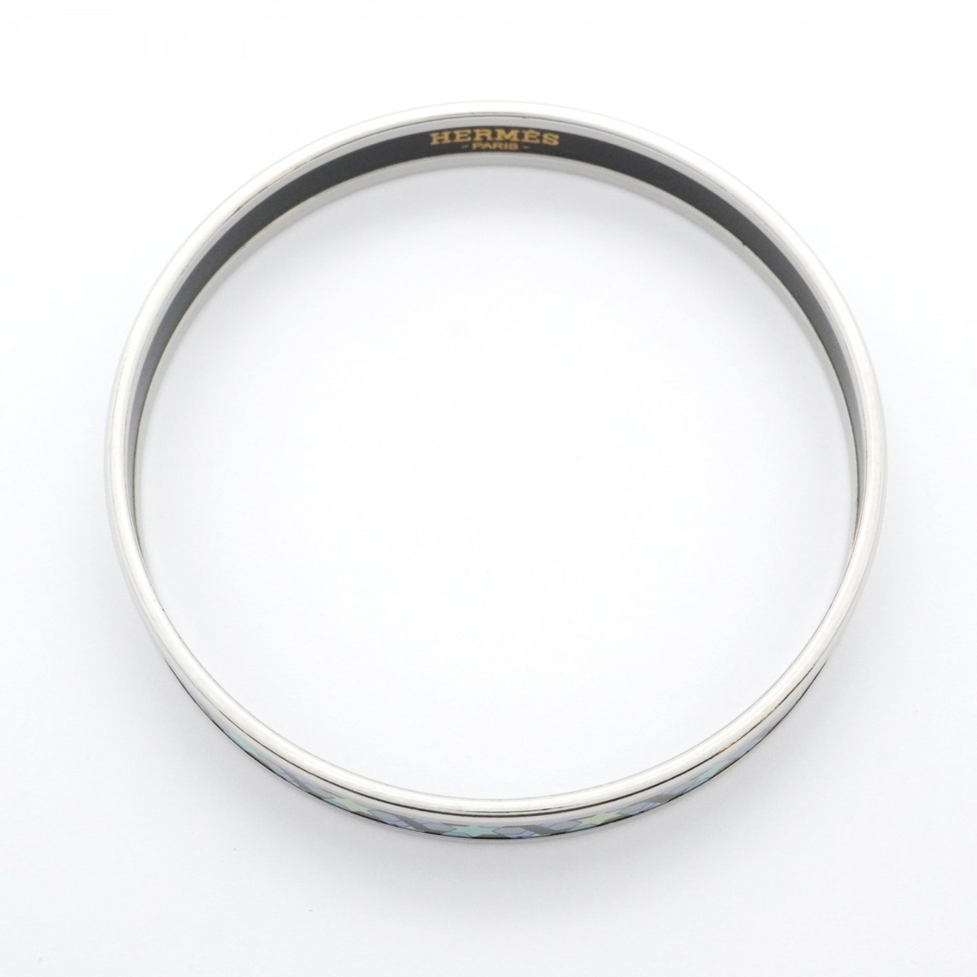 Hermes bangle, enamel PM, metal, cloisonné, silver, blue, multicolor, women\'s