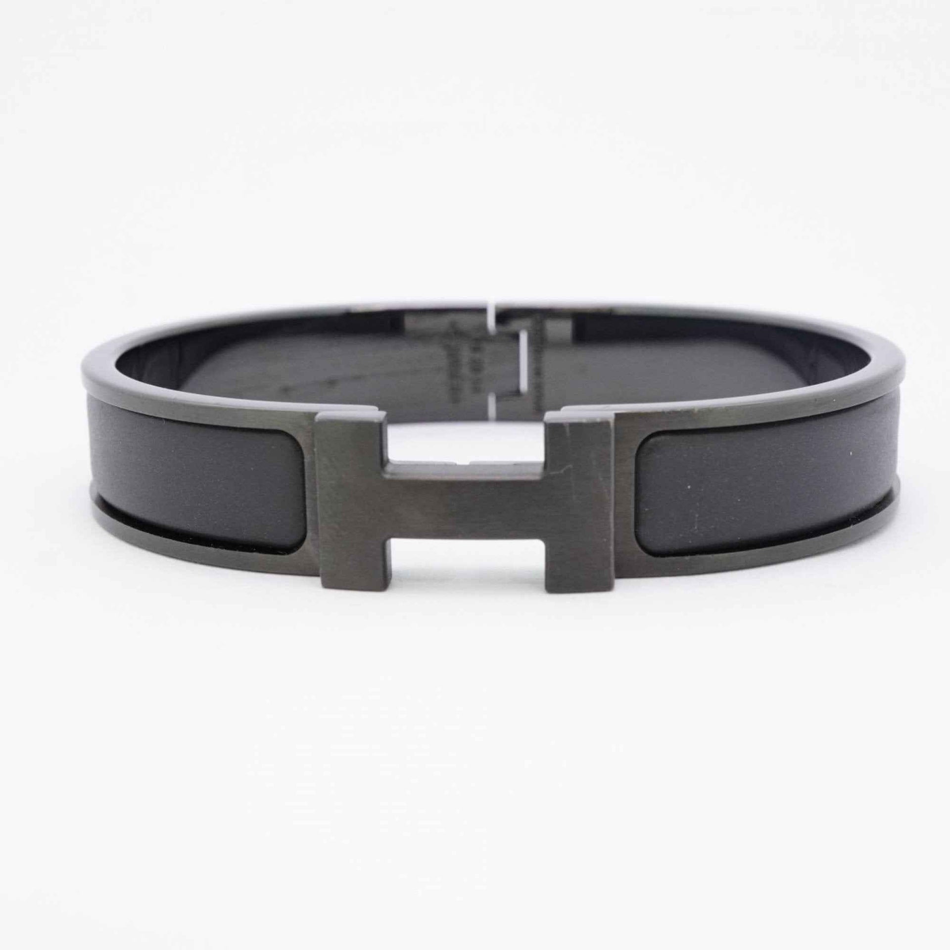 Hermes Click-Clack PM Bangle in Metal and Black for Men Women