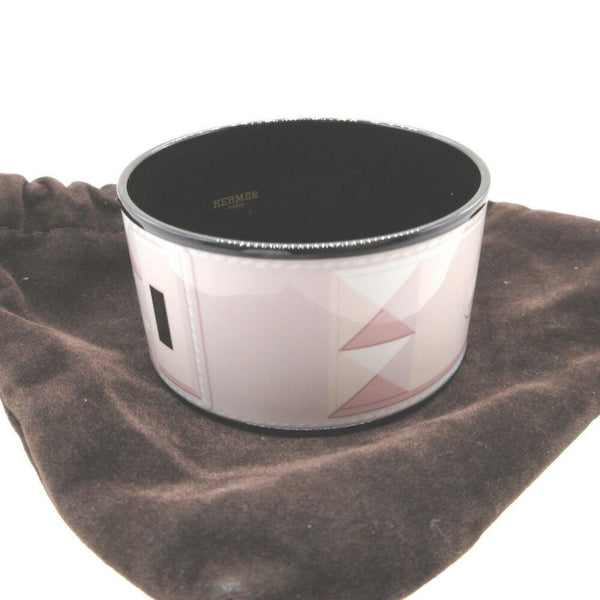 Hermes enamel bangle TGM Q stamp (made in 2013) metal pink black bracelet 0014HERMES 6B0014AAA5