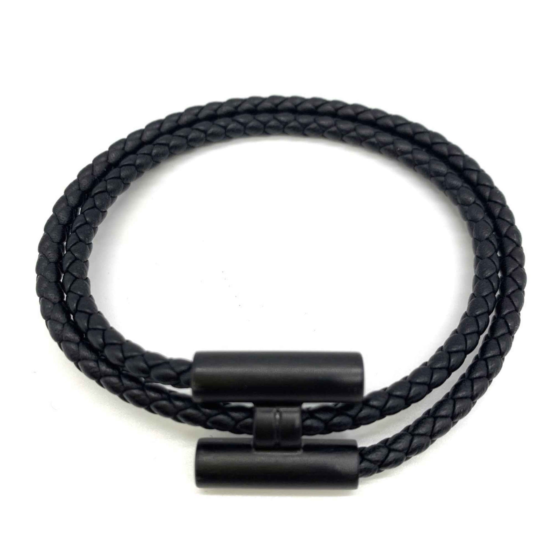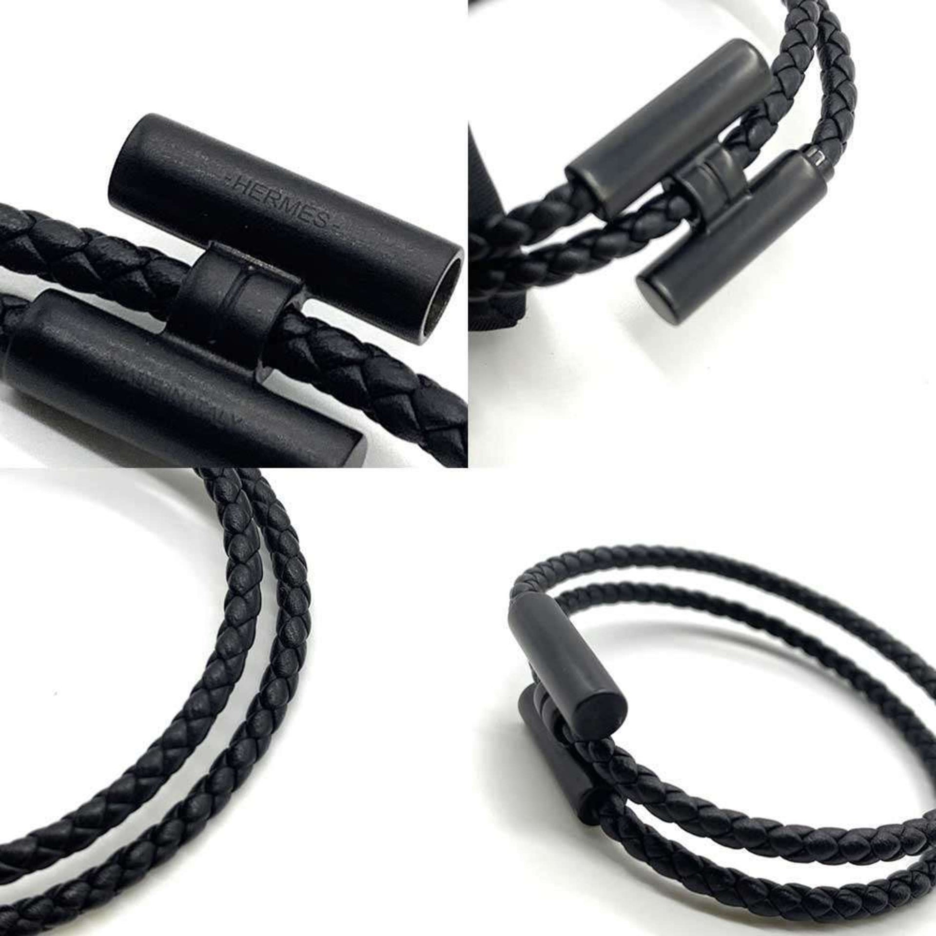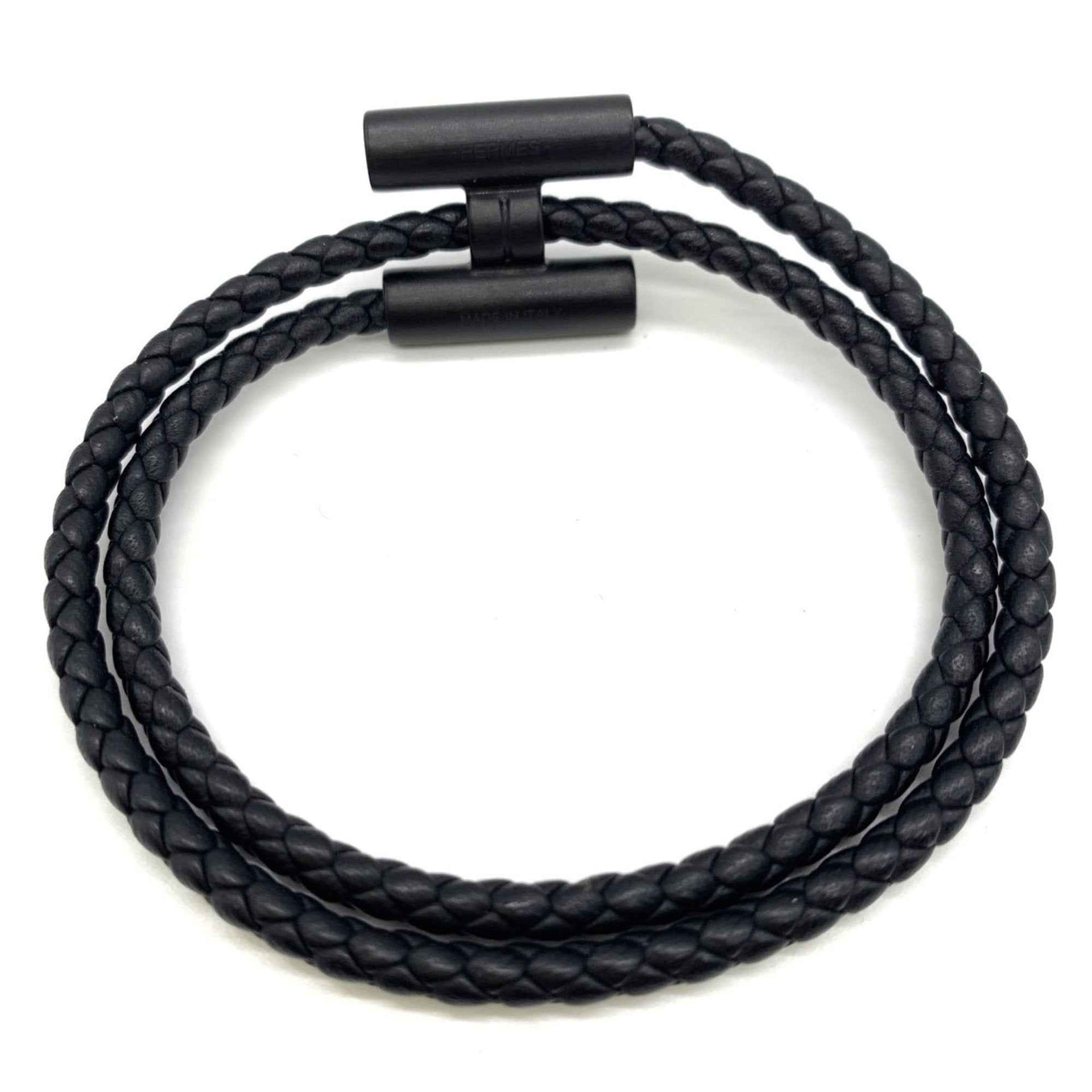 Hermès H Leather Bracelet, Vaux Swift Tourni Tresse, Black, HERMES