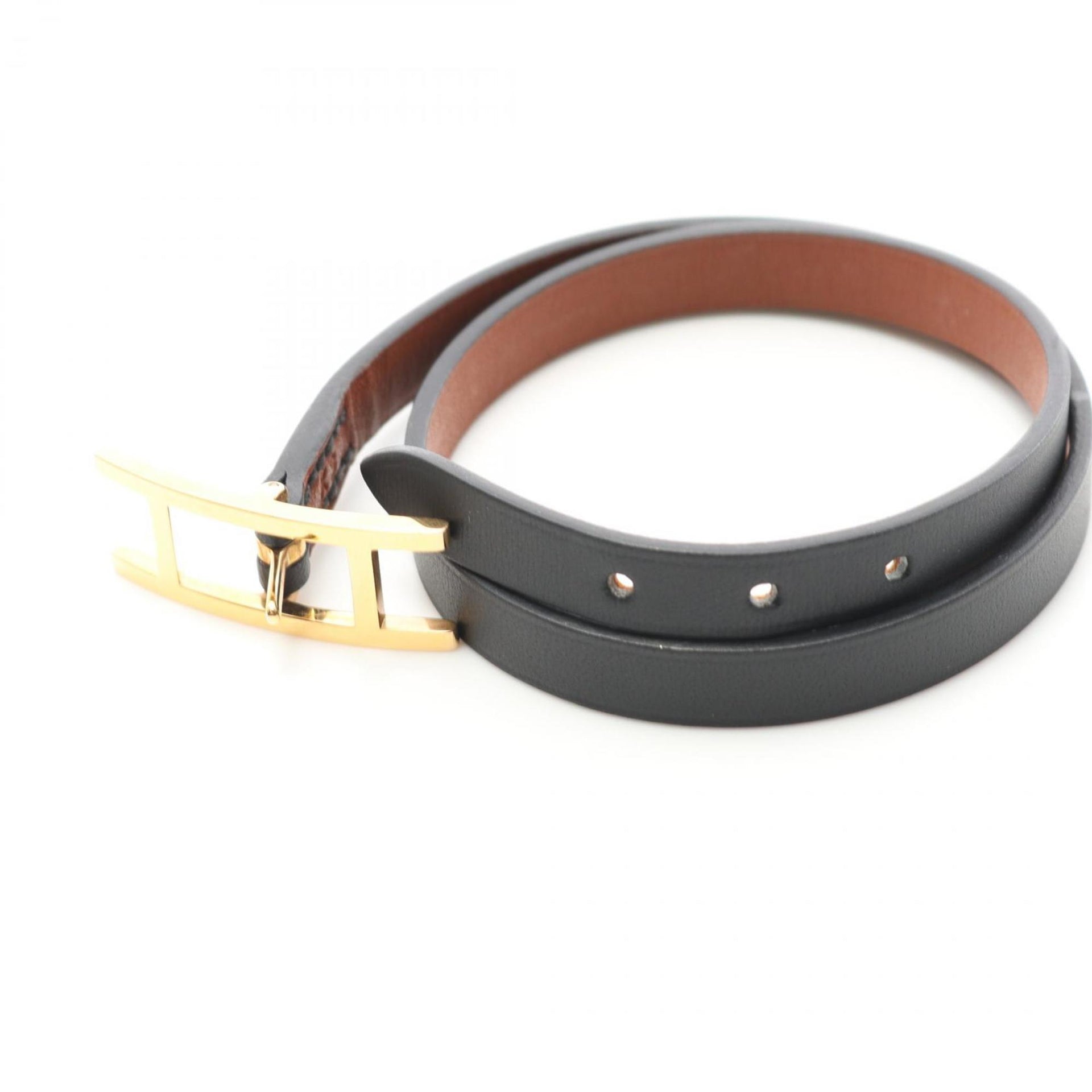 Hermes Hermès Api 3 Bracelet, Box Calf Leather, Black, with Gold Hardware