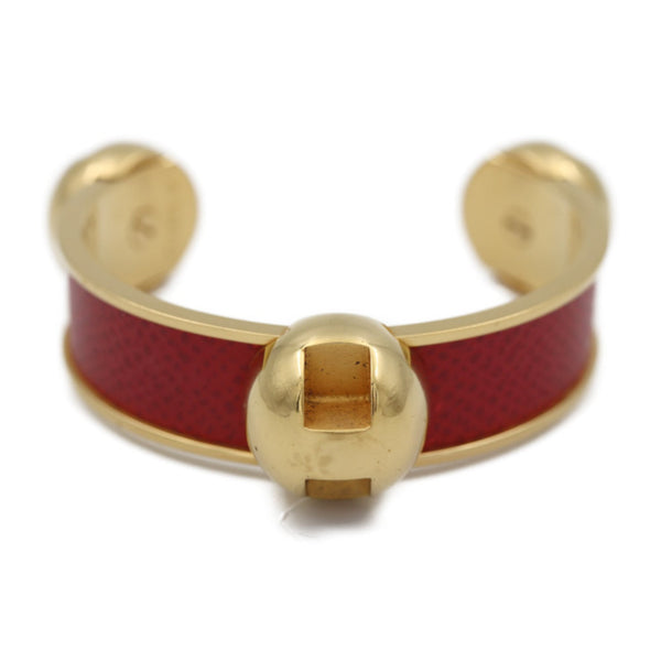 HERMES Hermes Bangle Metal Leather Gold Red C Cuff Bracelet