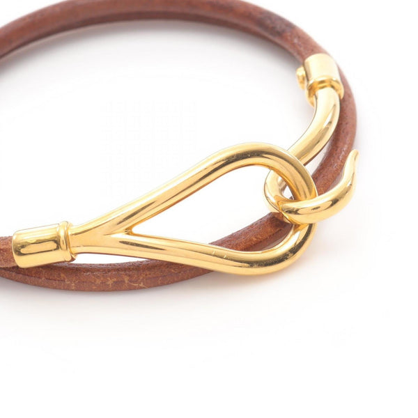 Hermes Hermès Jumbo Choker Bracelet Accessory Leather GP (Gold Plated) Women\'s Brown and Gold