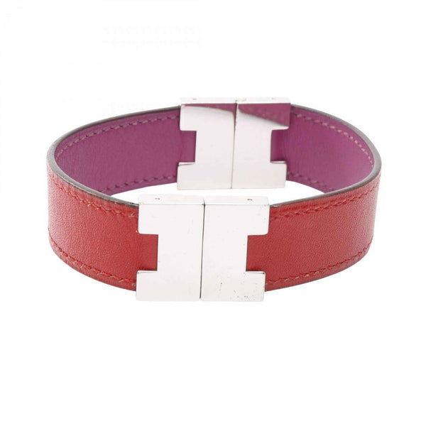 Hermes Hermès Lurie bracelet, stainless steel and leather, available in silver, red, purple.