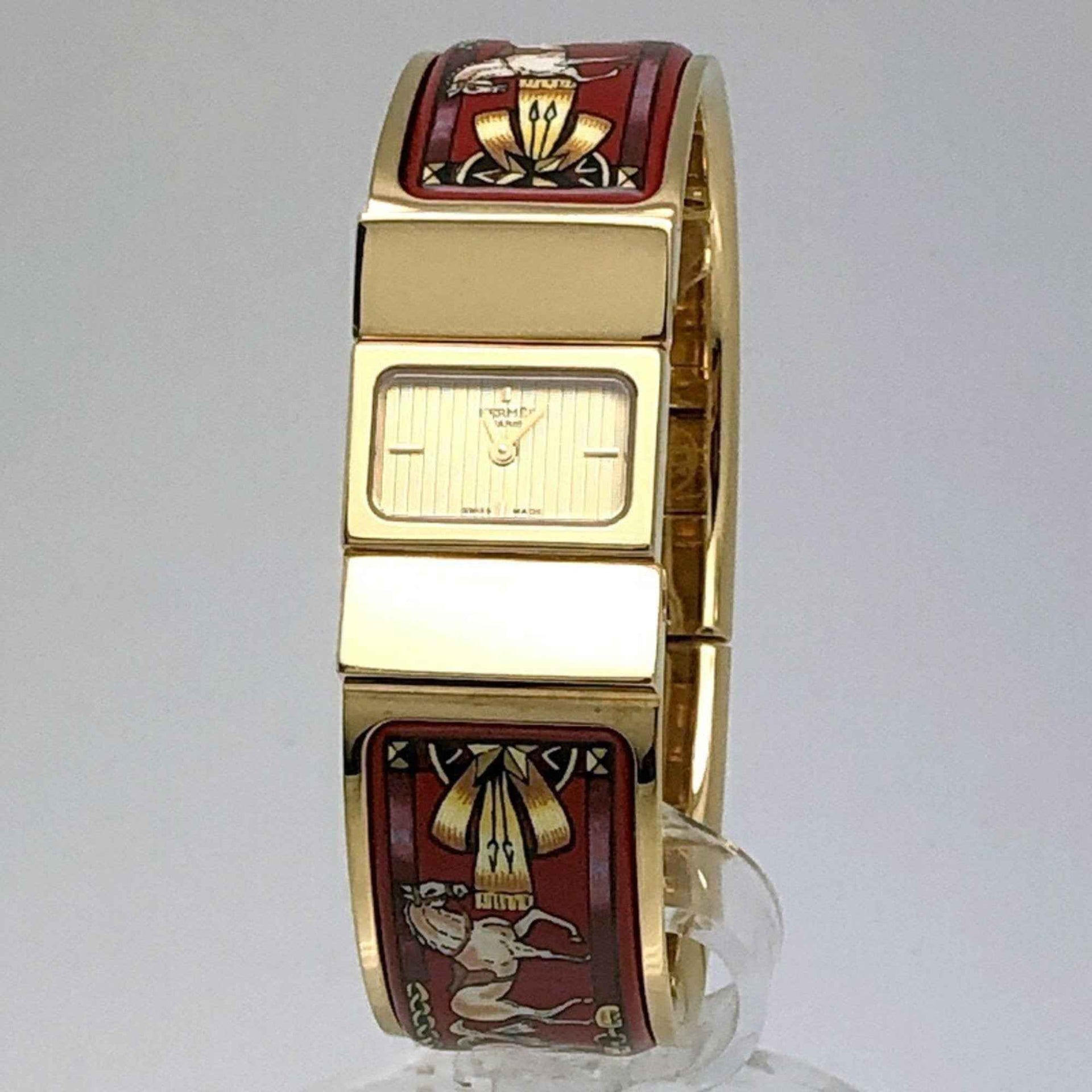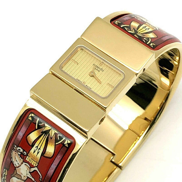 HERMES L01.201 Rocé GP Bangle Watch with Gold Quartz Movement and Cloisonné Finish, Women\'s Analog Bracelet, Mikunigaoka Store, ITFUFNY1I6L1, RM0205T