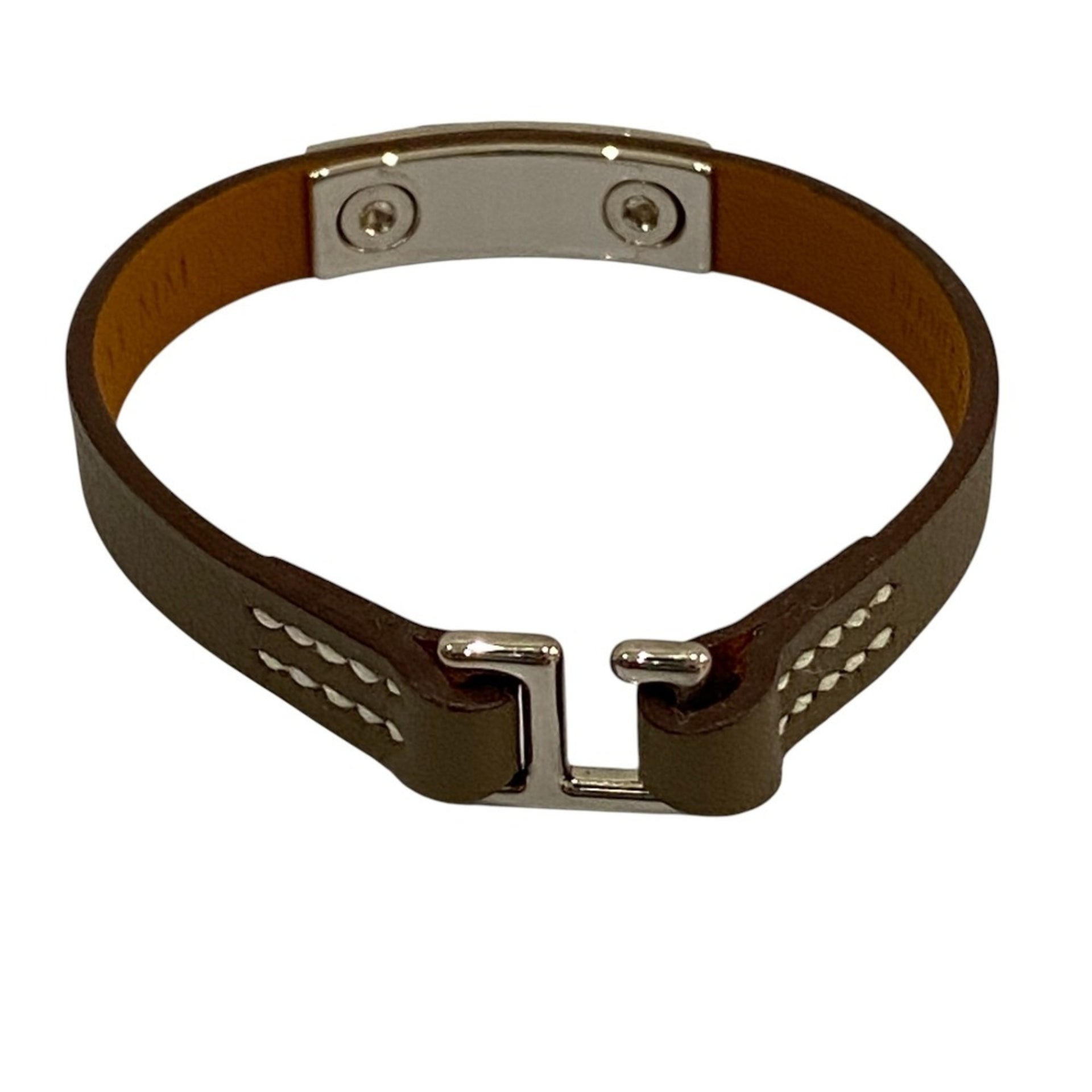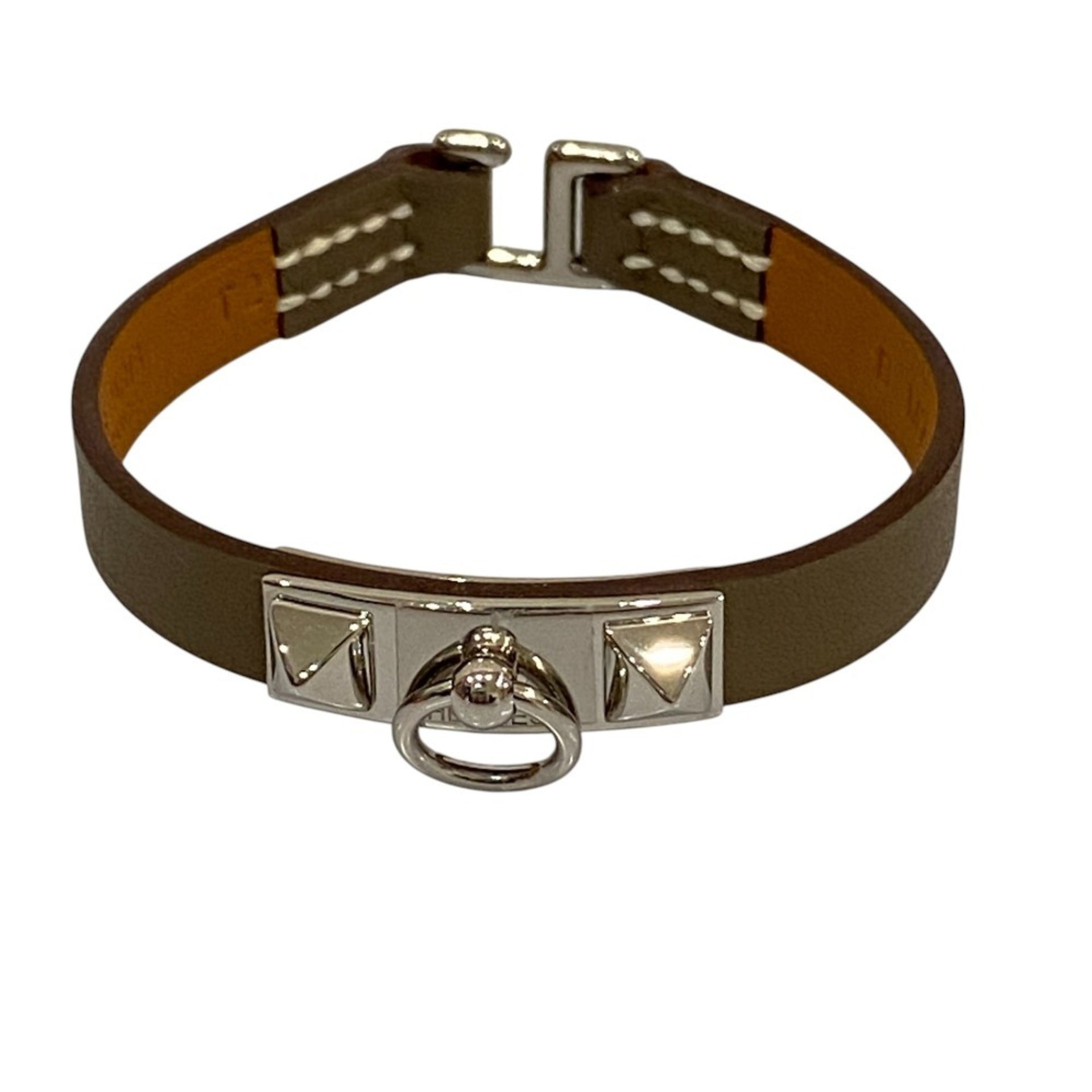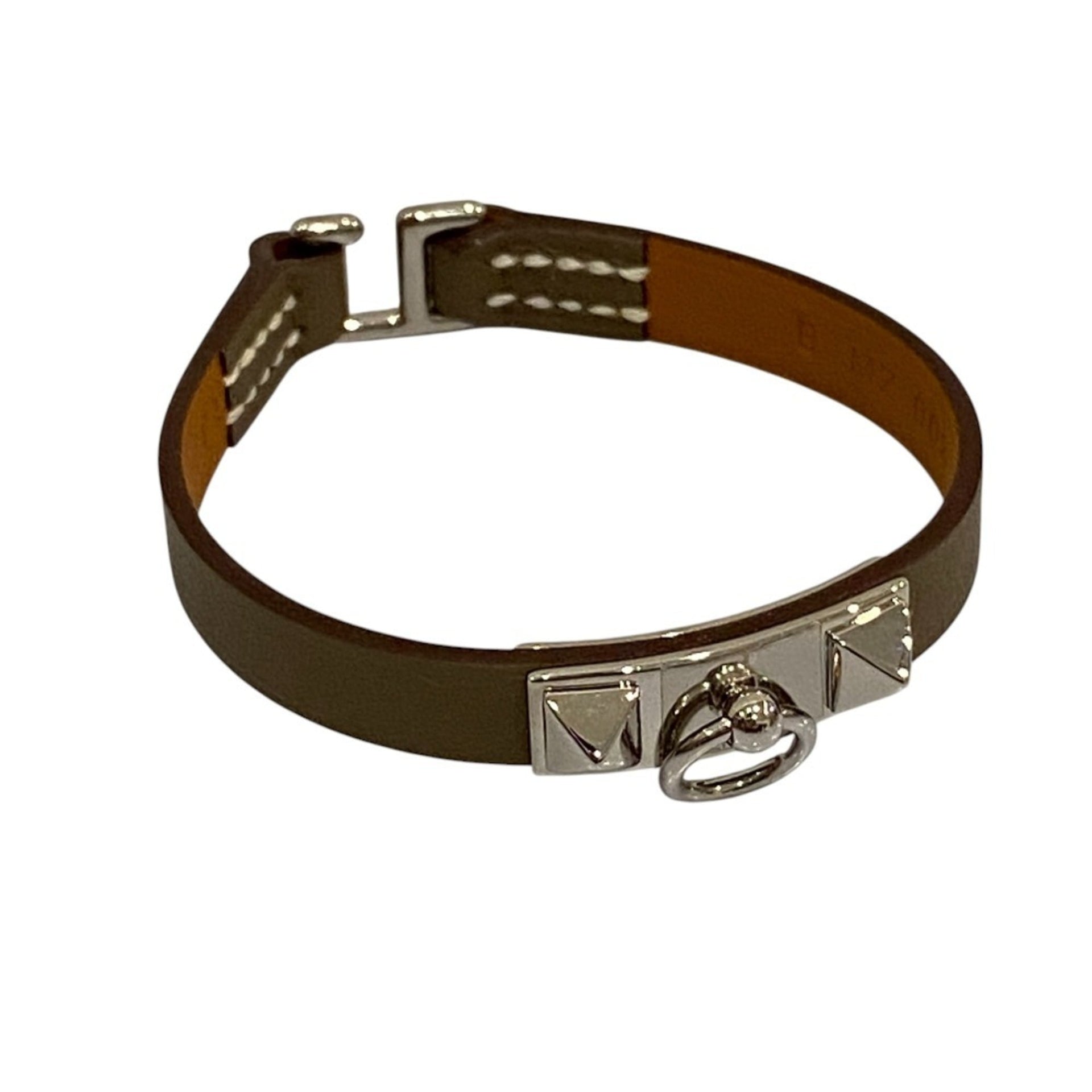 HERMES Mini Rival Swift Leather Bracelet Bangle B Stamped Etoupe Women\'s