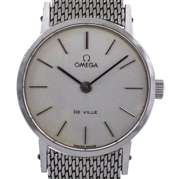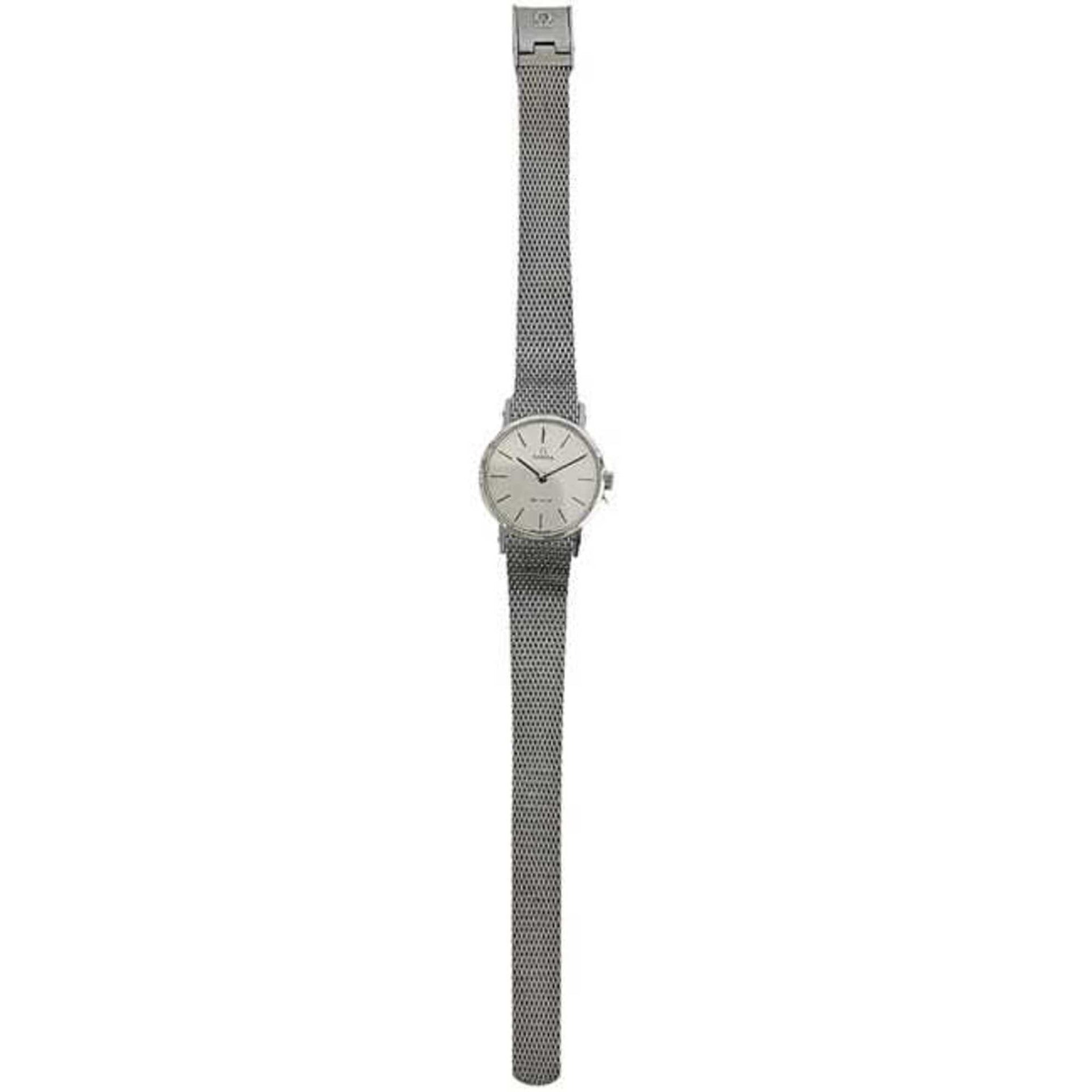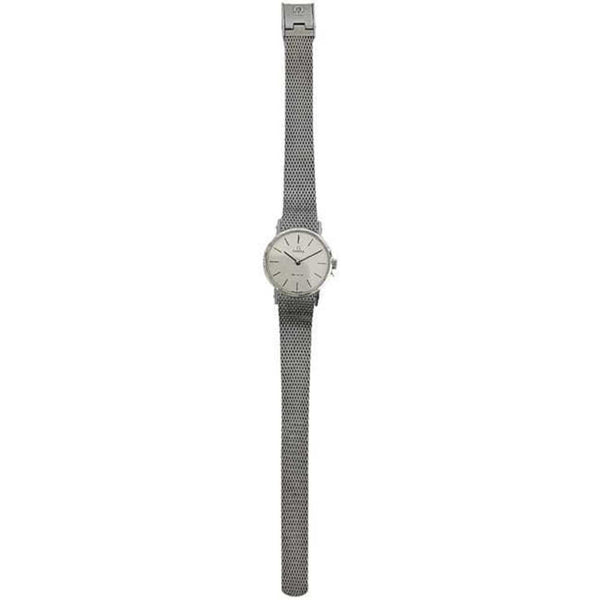 Omega De Ville watch f-24296, silver, women\'s, stainless steel, manual winding, mesh bracelet, silver dial, analog, slide buckle.