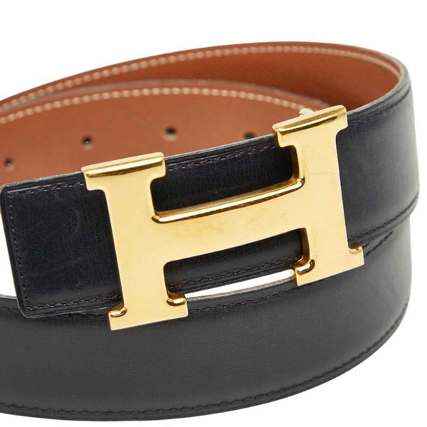 Hermes Hermès Constance H Belt, reversible, size 65, black and brown box calf leather, Couchvel, women\'s.