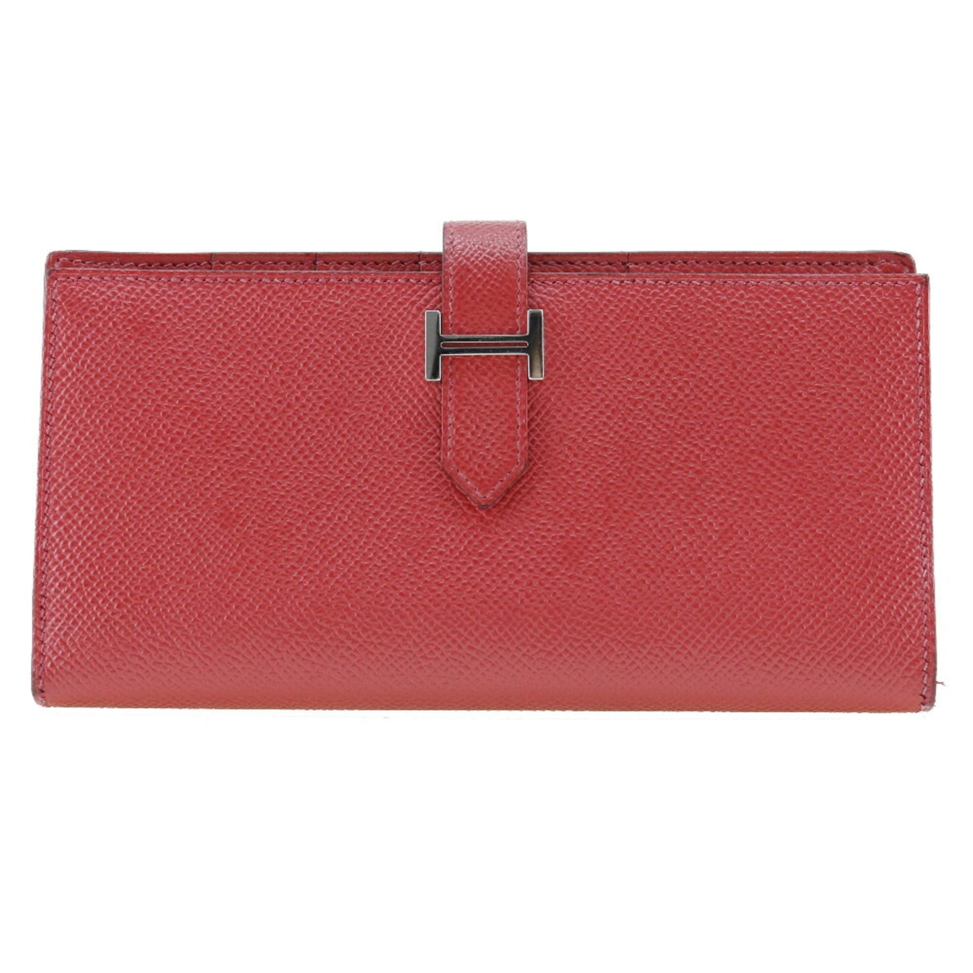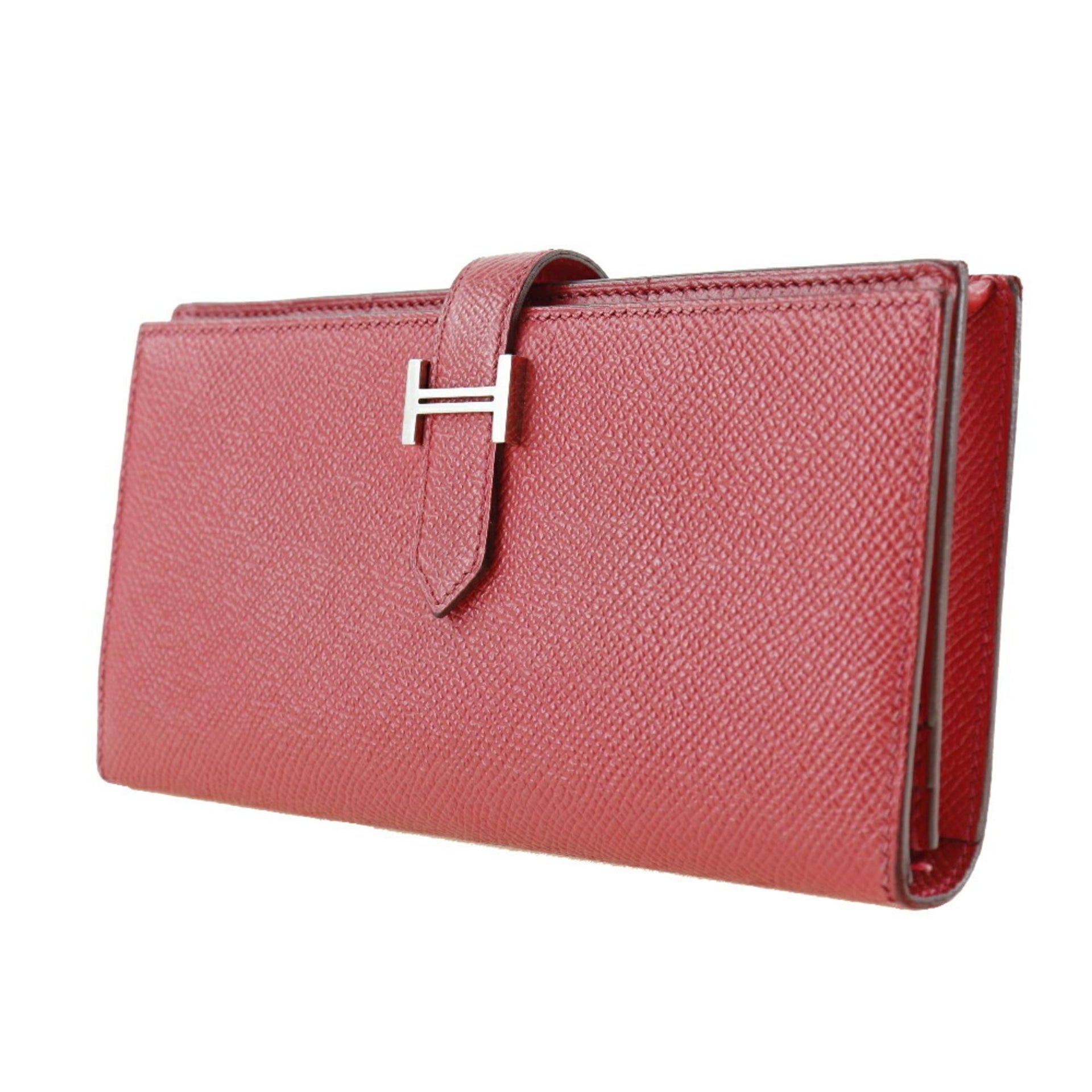 Hermes HERMES Beansufla Long Wallet Vaux Epson Made in France 2014 Red □R Belt Hardware Ladies