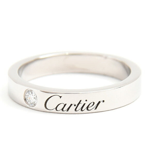 Cartier C de Women\'s Wedding Ring with Single Diamond, Size 46/6, Platinum PT950