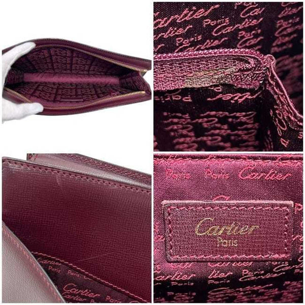 Cartier Second Bag ec-24670 Bordeaux Must Leather Strap Clutch - Men\'s with Handle, Wine Red