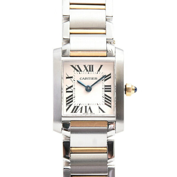 Cartier Women\'s Tank Française SM Watch, Battery-Operated, White Dial, Stainless Steel, Gold, W51007Q4, SS x 750YG