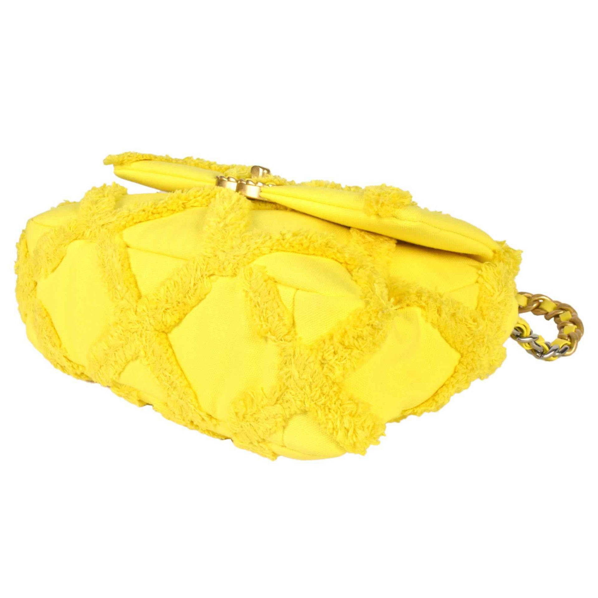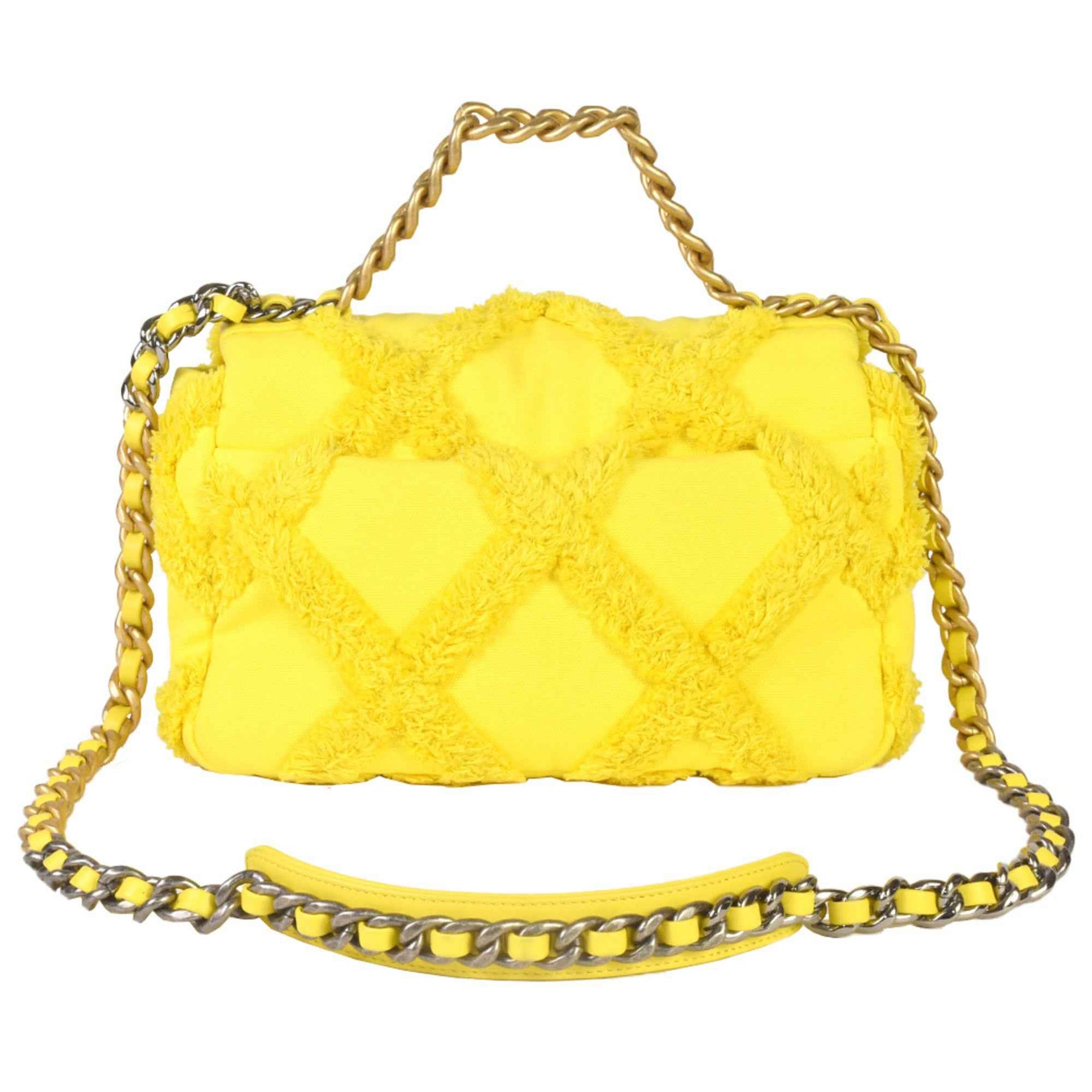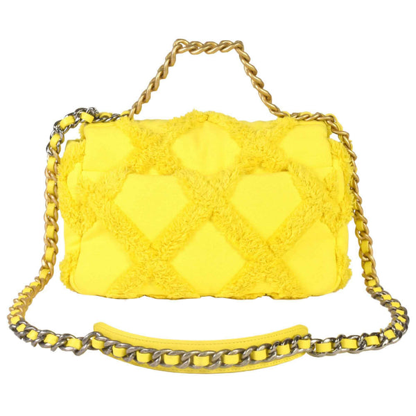CHANEL 19 Matelasse Chain Shoulder Bag No. 30 Canvas Leather Yellow