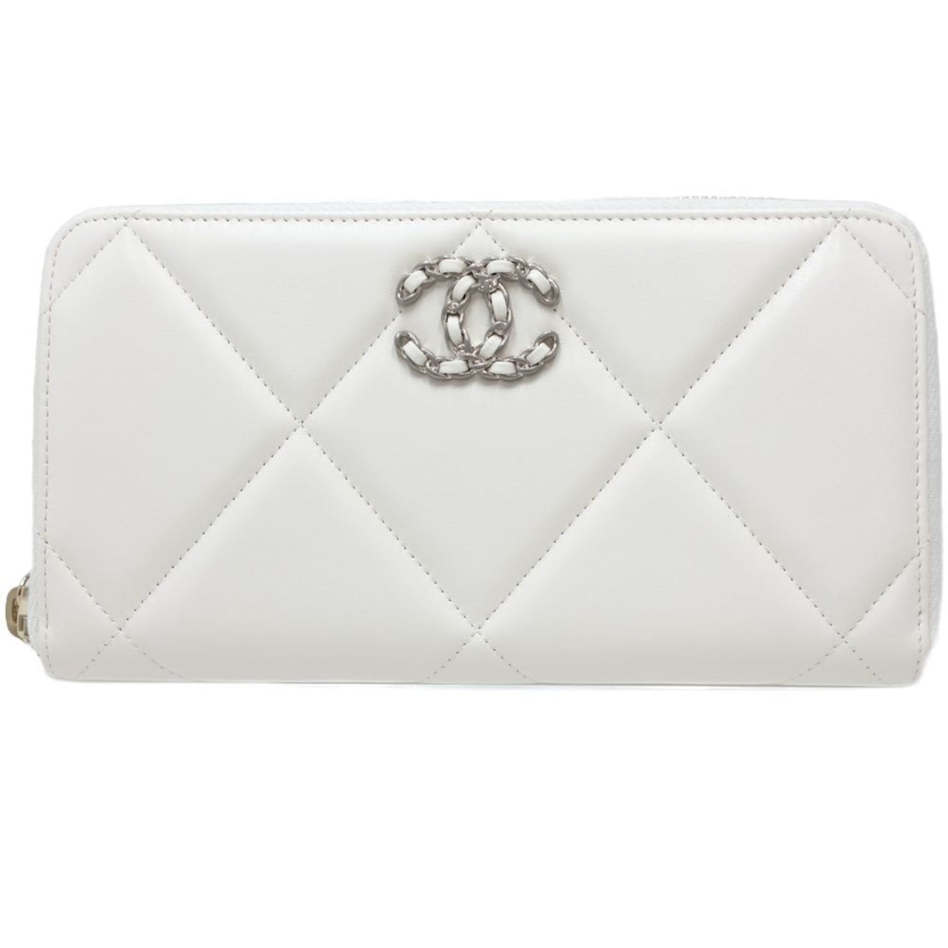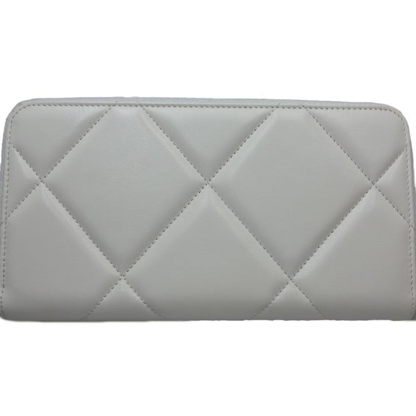 CHANEL 19 Round Zipper Matelasse CC Mark AP1063 Long Wallet Leather White 083407