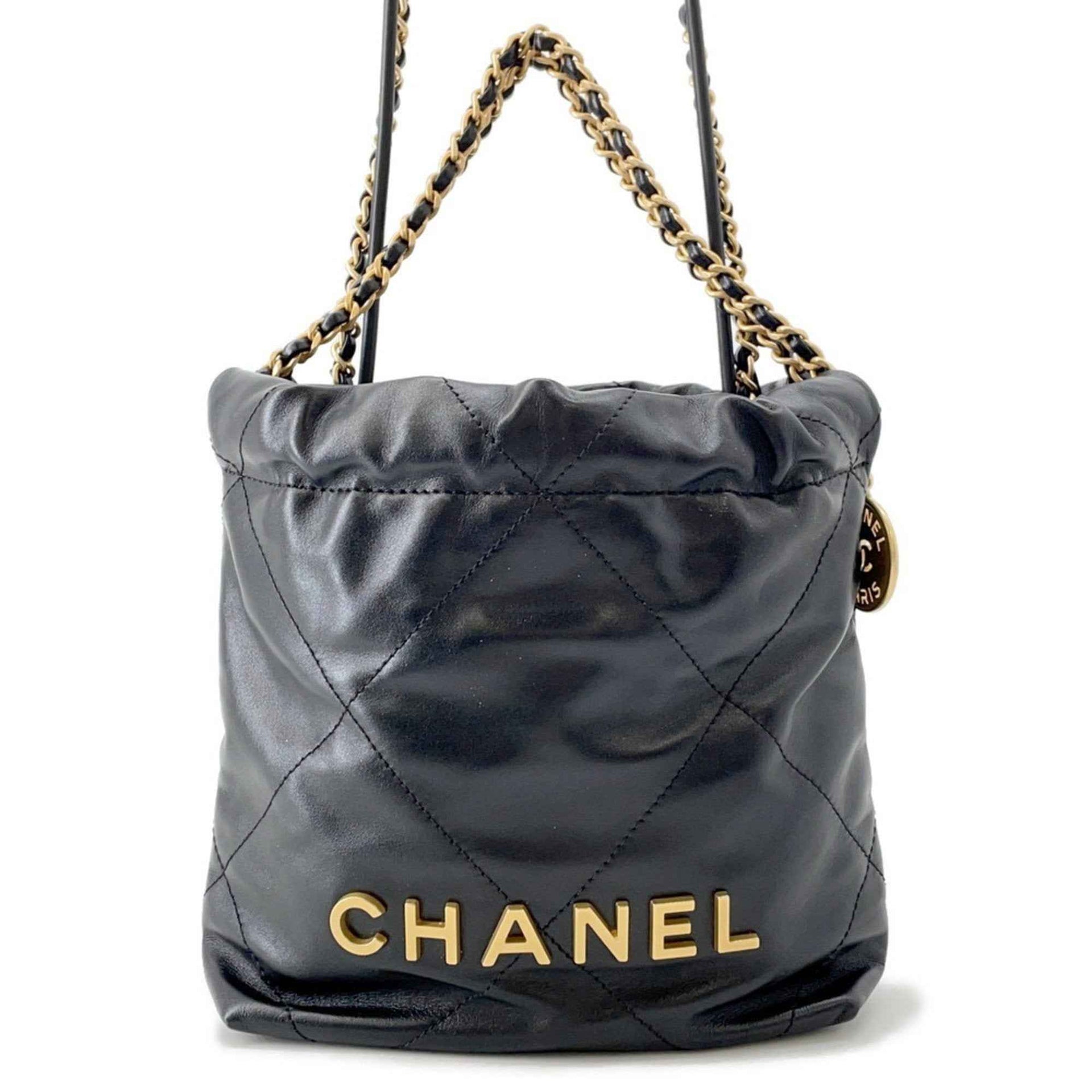 CHANEL 22 Mini Handbag with Coco Mark, Shiny Calfskin Leather, AS3980, 2-Way, Black
