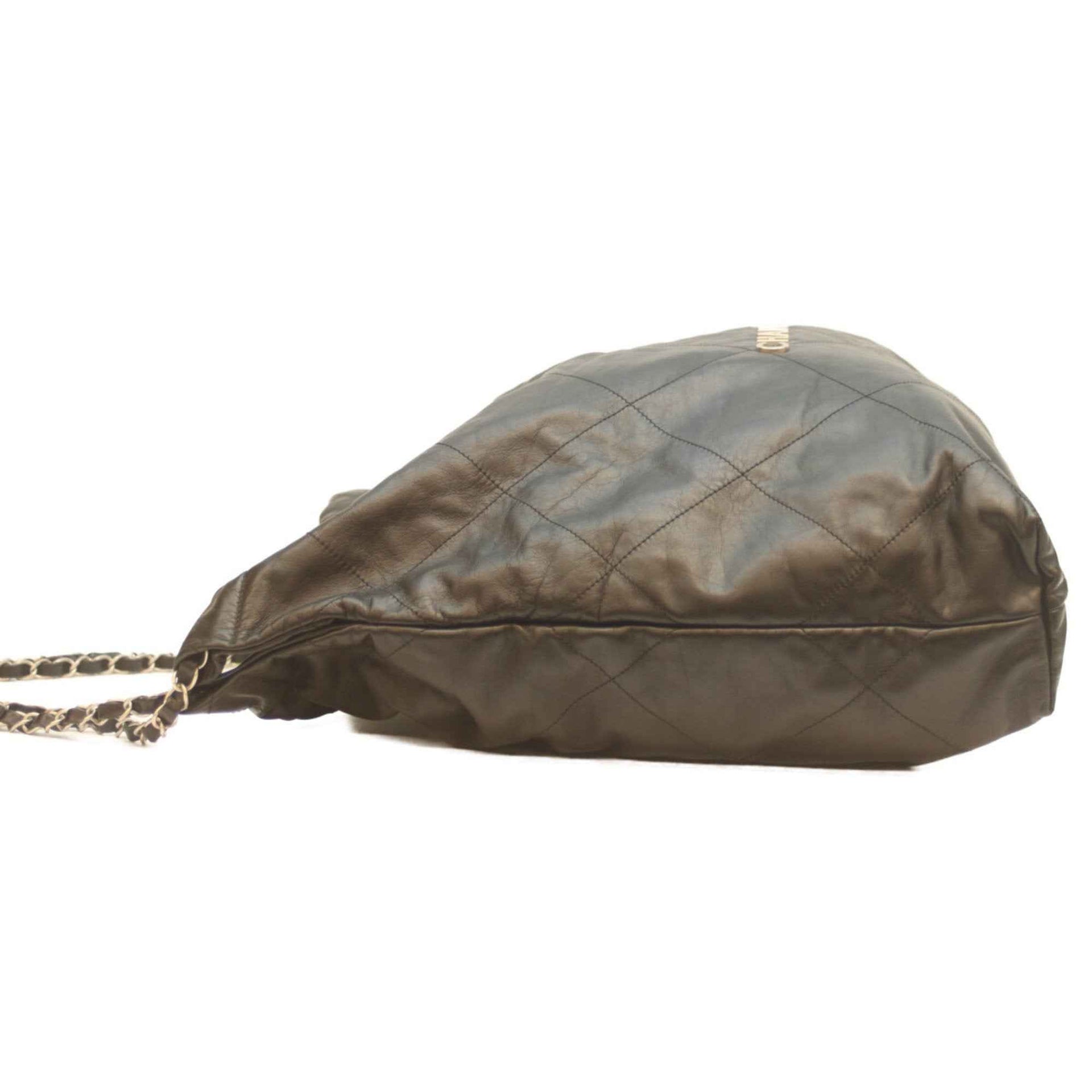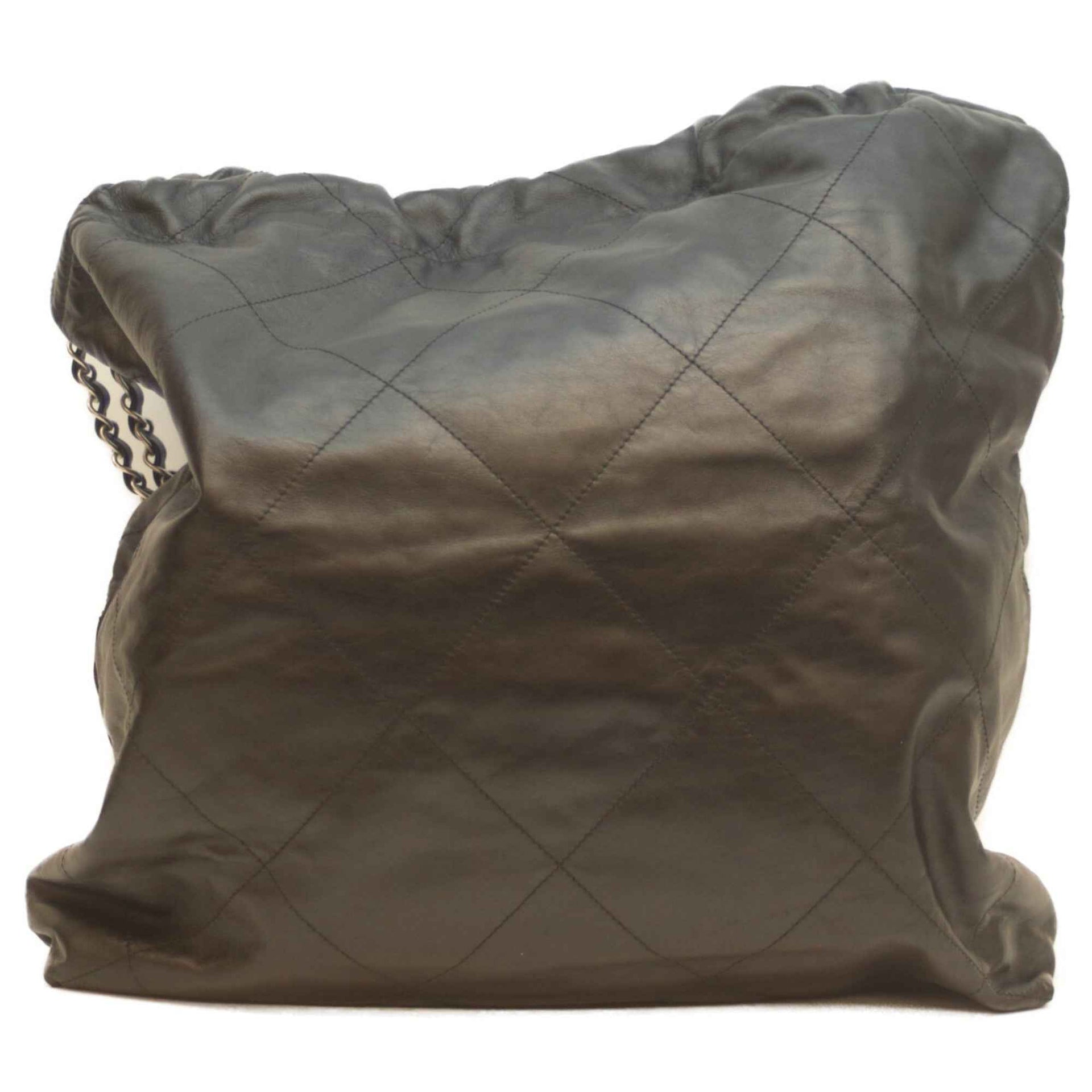 CHANEL AS3262 Black Shiny Calfskin Leather with Silver Hardware, Chanel 22 Large Shoulder Bag, Silver, Black, Women\'s