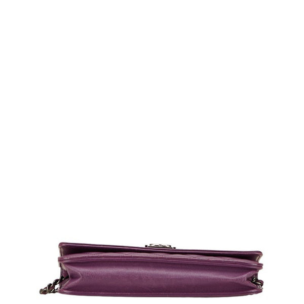 CHANEL Boy Chanel Coco Mark Crossbody Chain Wallet Shoulder Bag in Purple Lambskin for Women