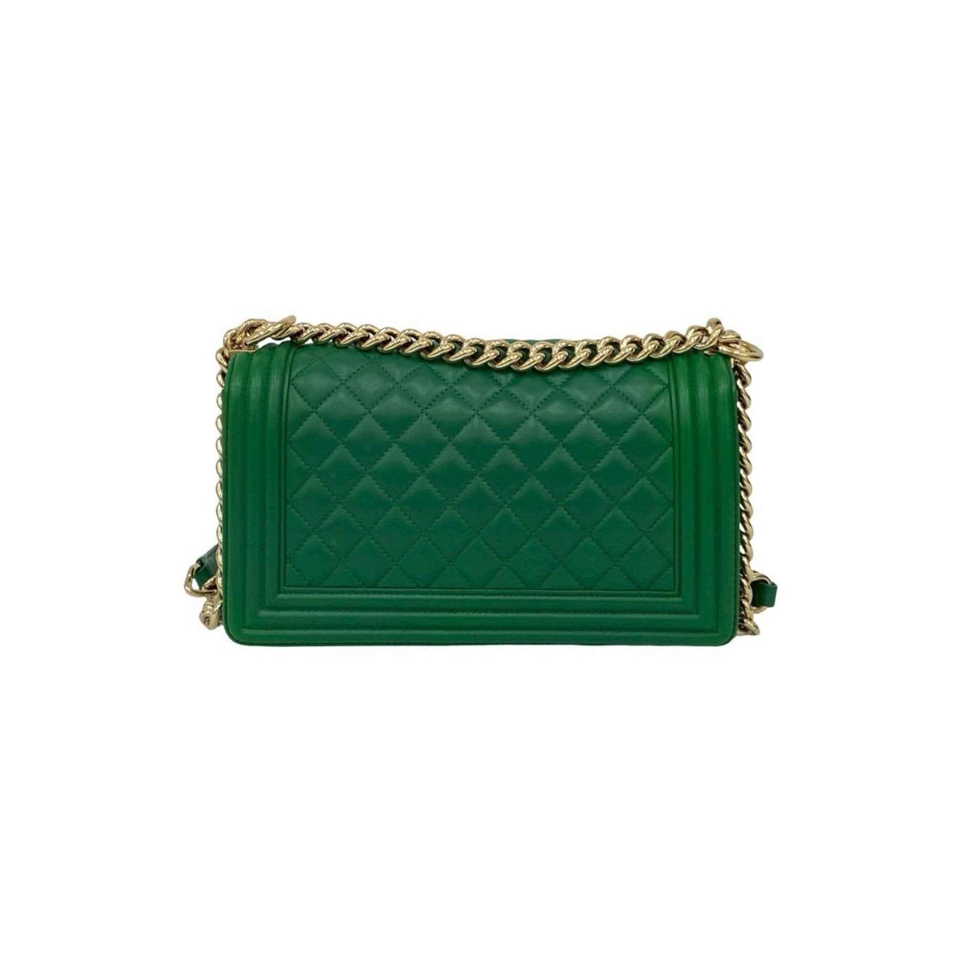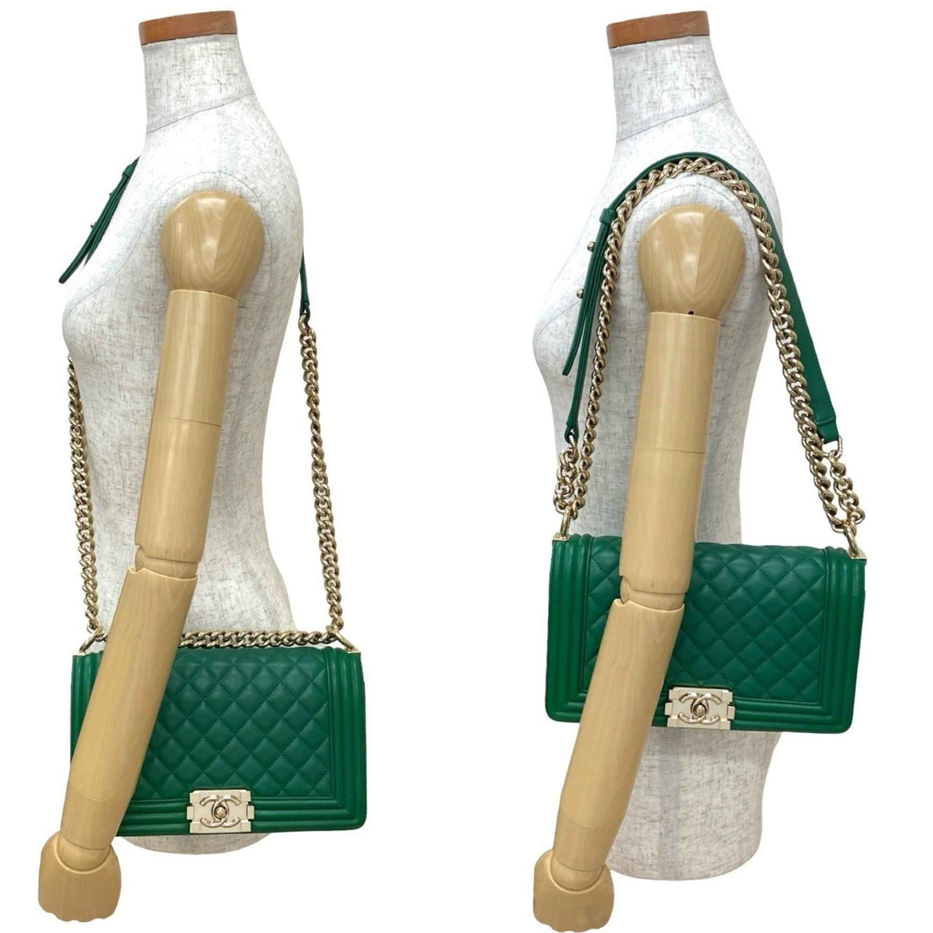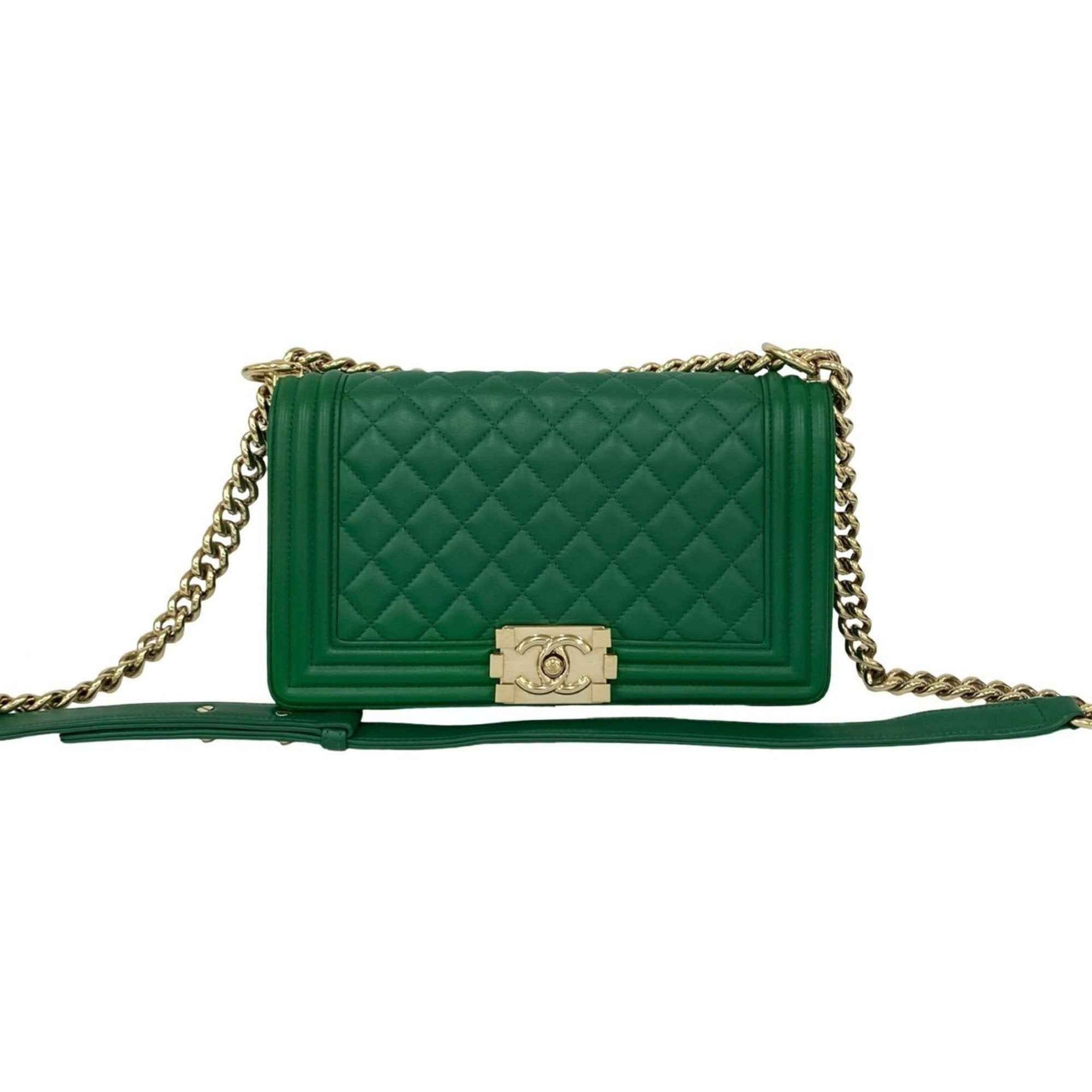 CHANEL Boy Chanel Coco Mark Lambskin Leather Chain Shoulder Bag Green 27446
