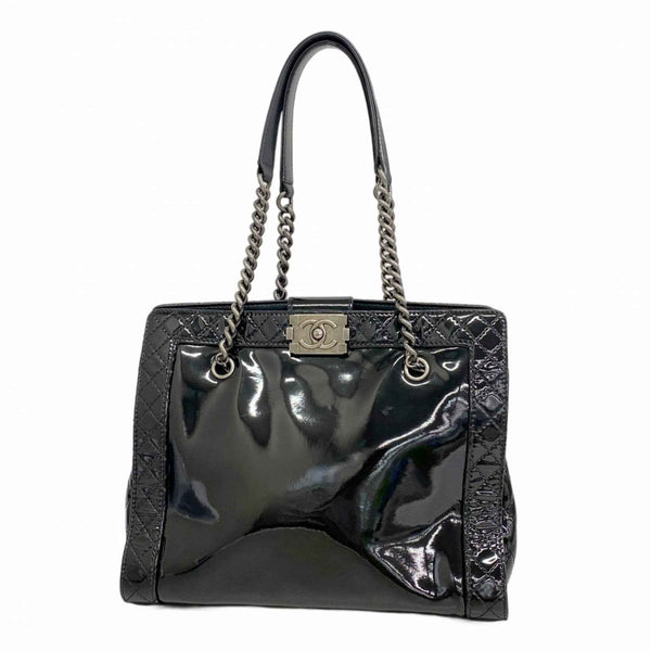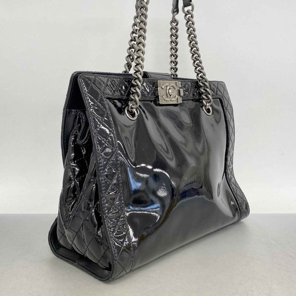 Chanel Boy Shoulder Bag, Chain Patent Leather, Black, Women\'s