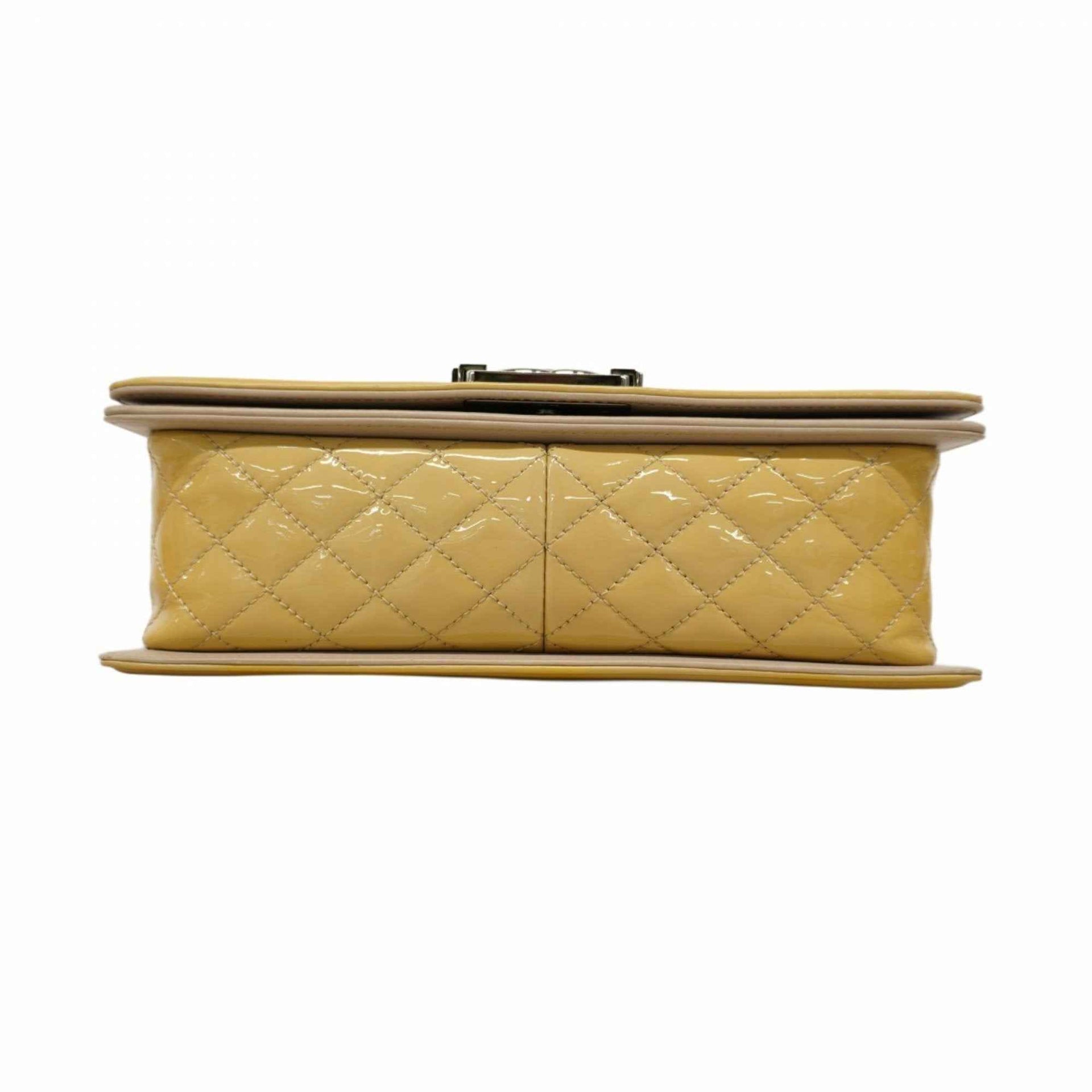 Chanel Boy Shoulder Bag, V-Stitch Chain Patent Leather, Yellow, Women\'s