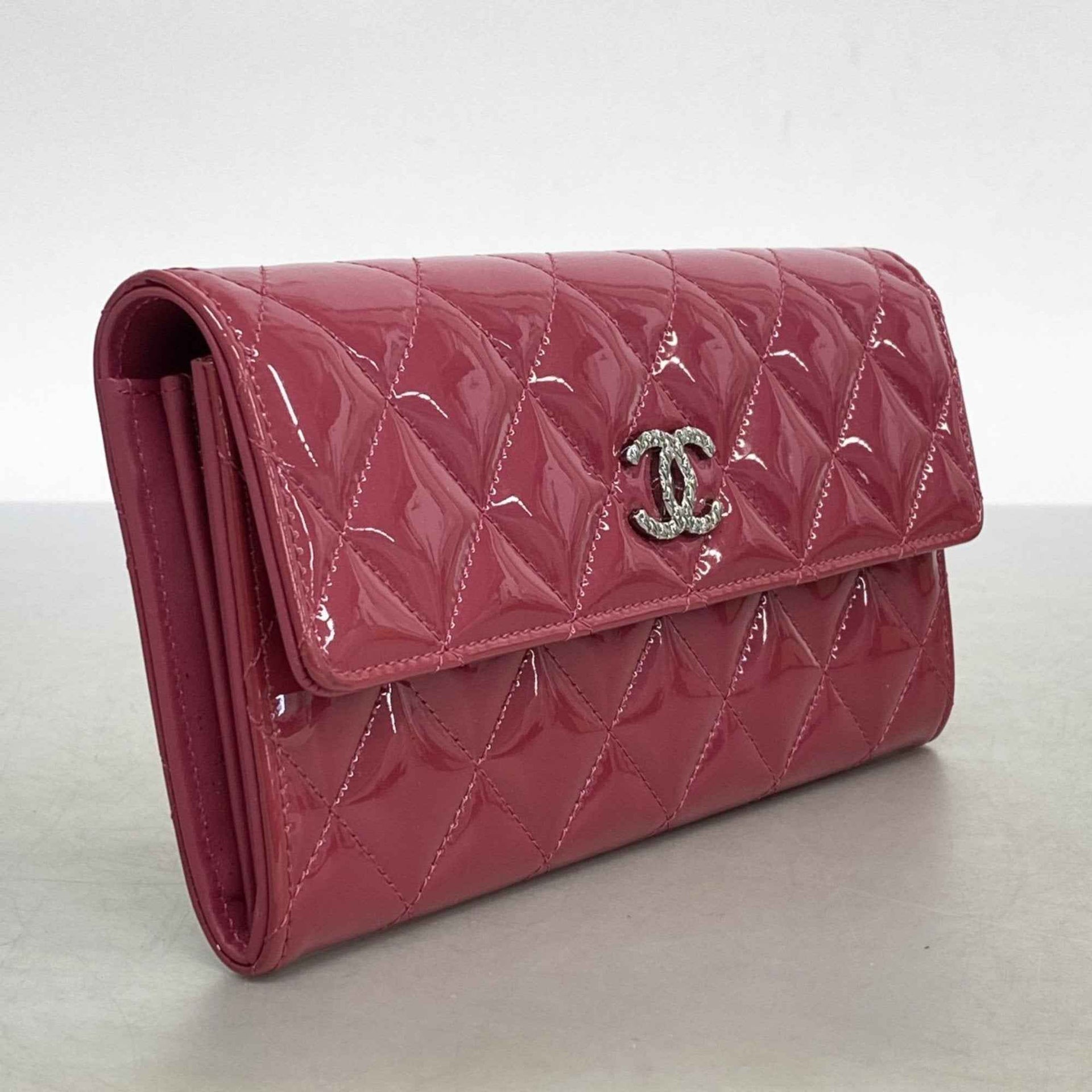 Chanel Brilliant Patent Leather Long Wallet, Pink, Women\'s