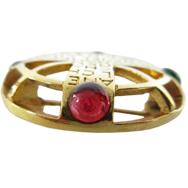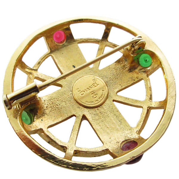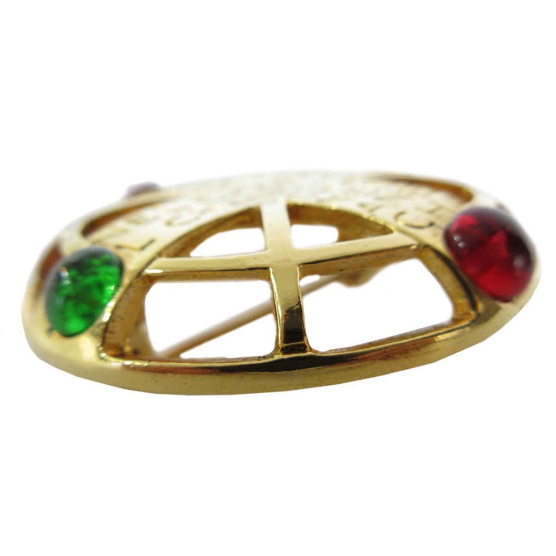 CHANEL Brooch Metal with Glass Stones in Gold, Red, and Green, Women\'s, s0694a