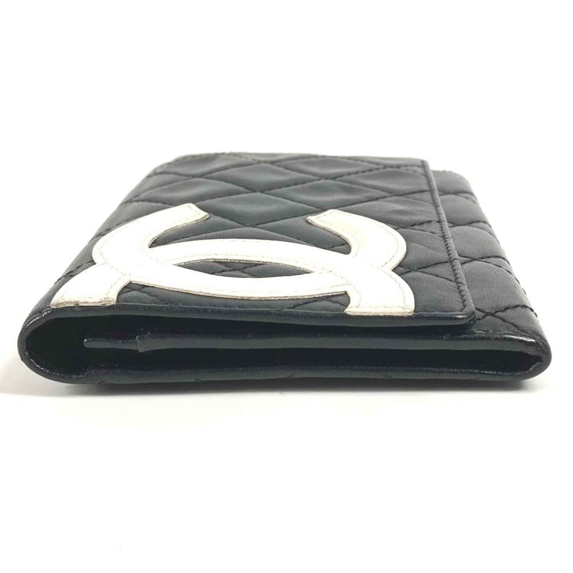 CHANEL Cambon CC Coco Mark Bifold Logo Compact Wallet with Flap, Leather, Women\'s, Black