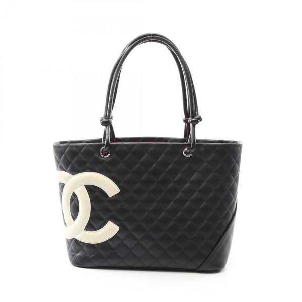 CHANEL Cambon Line Large Tote Bag, Lambskin Leather, Women\'s, Black and White