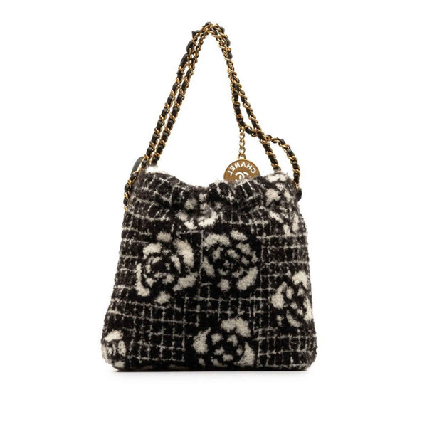 Chanel Camellia Coco Mark Chain Tote Bag Shoulder Black White Cotton Women\'s CHANEL
