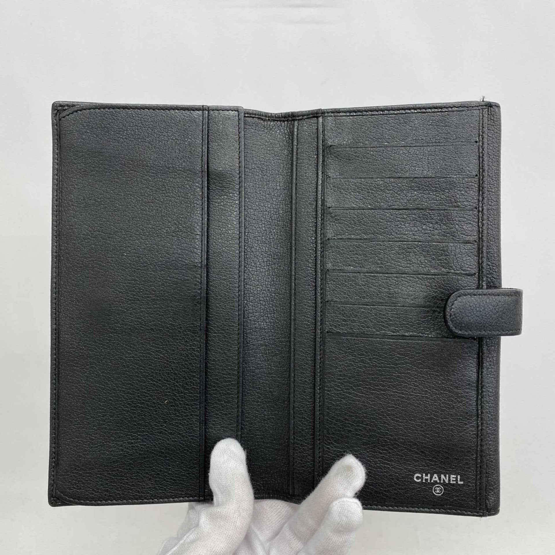 Chanel Camellia Leather Long Wallet Black Women\'s