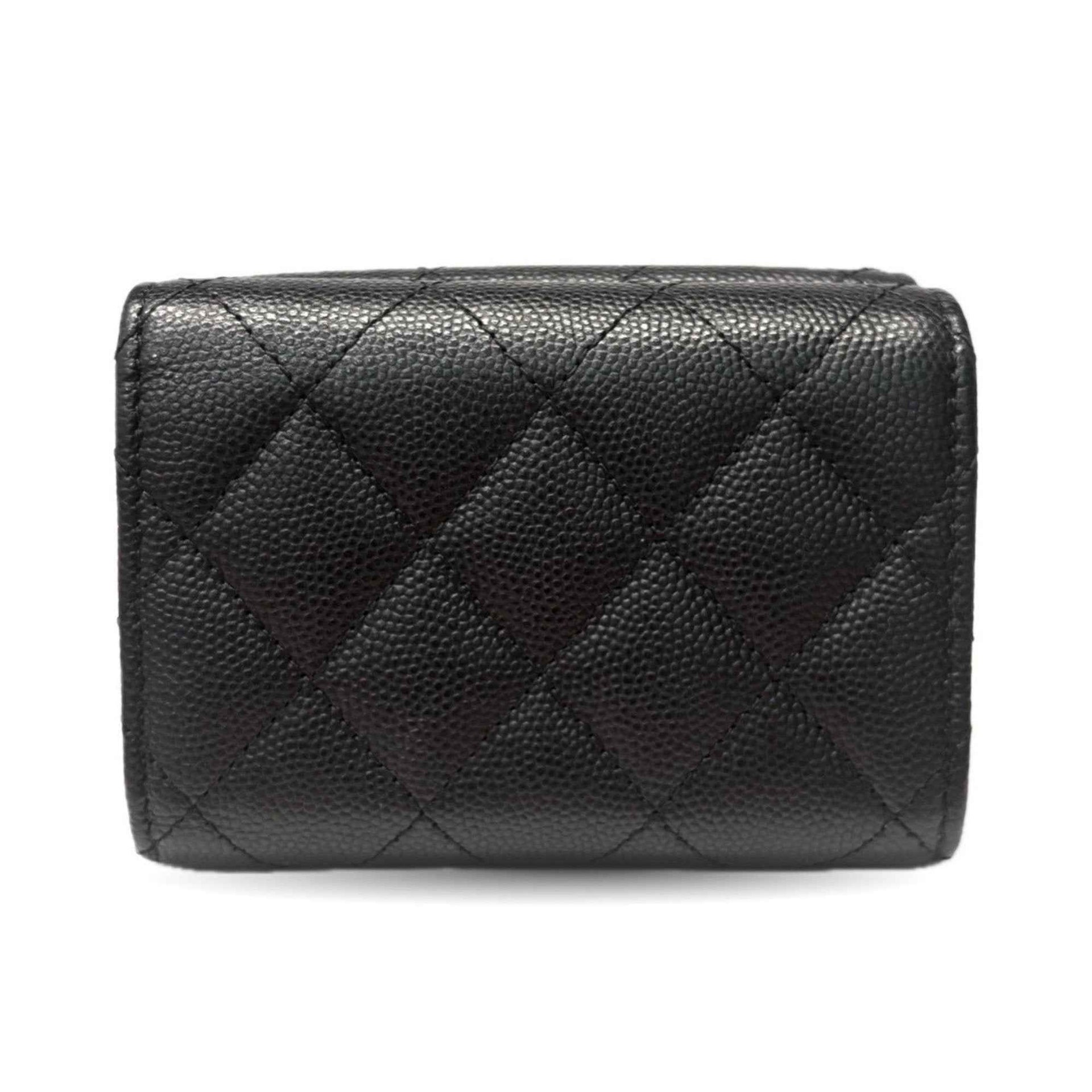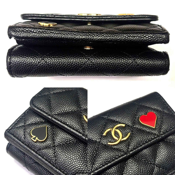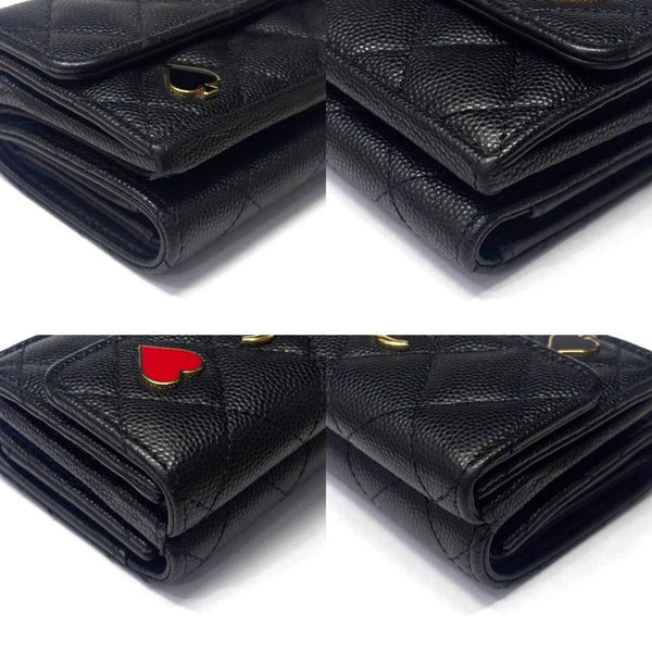 CHANEL Caviar Leather Heart Spade Tri-fold Wallet Black AP3081