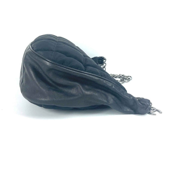 CHANEL CC Coco Mark Chocolate Bar Chain Shoulder Bag in Leather/Nylon, Black