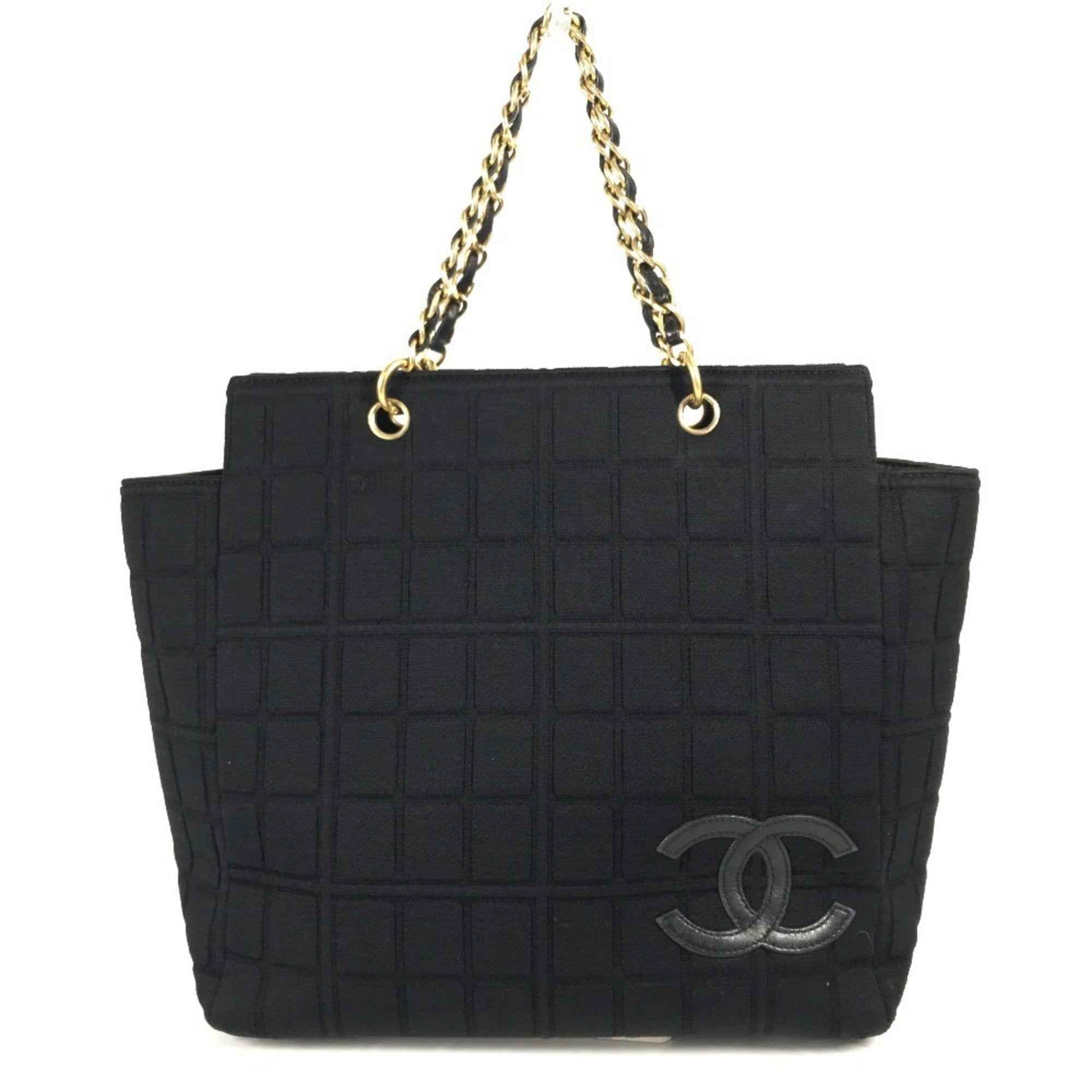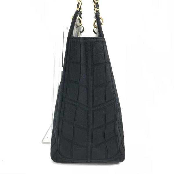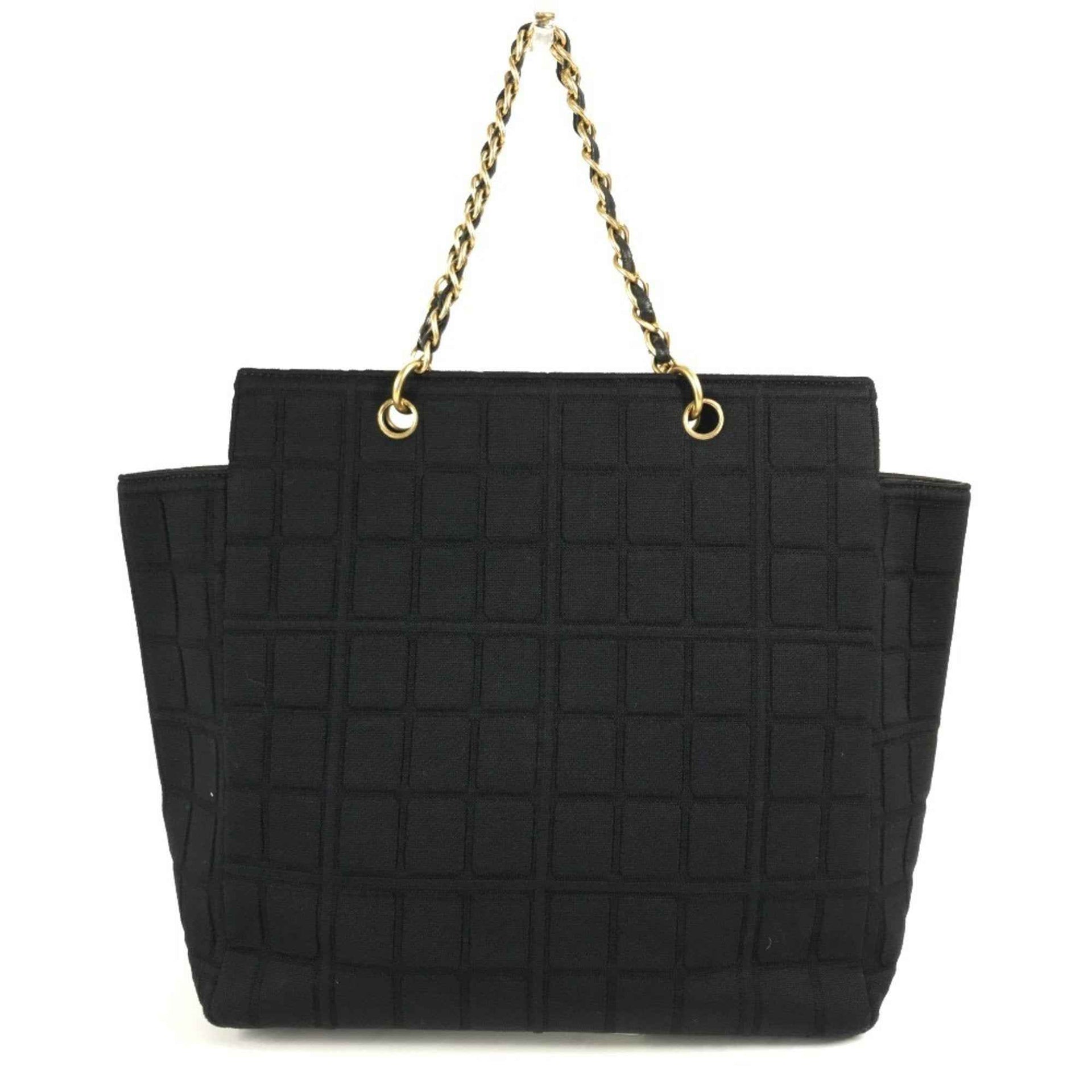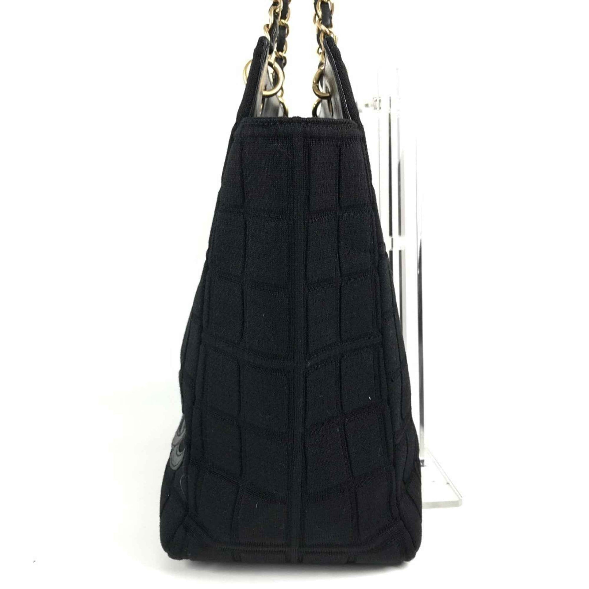 CHANEL CC Coco Mark Chocolate Bar Tote Bag with Double Chain Shoulder in Black