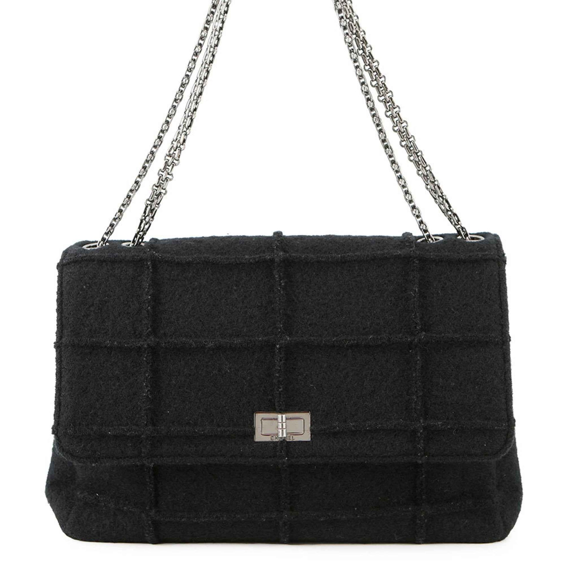 Chanel Chain Shoulder Bag 2.55 Chocolate Bar Felt A37590 CHANEL Black