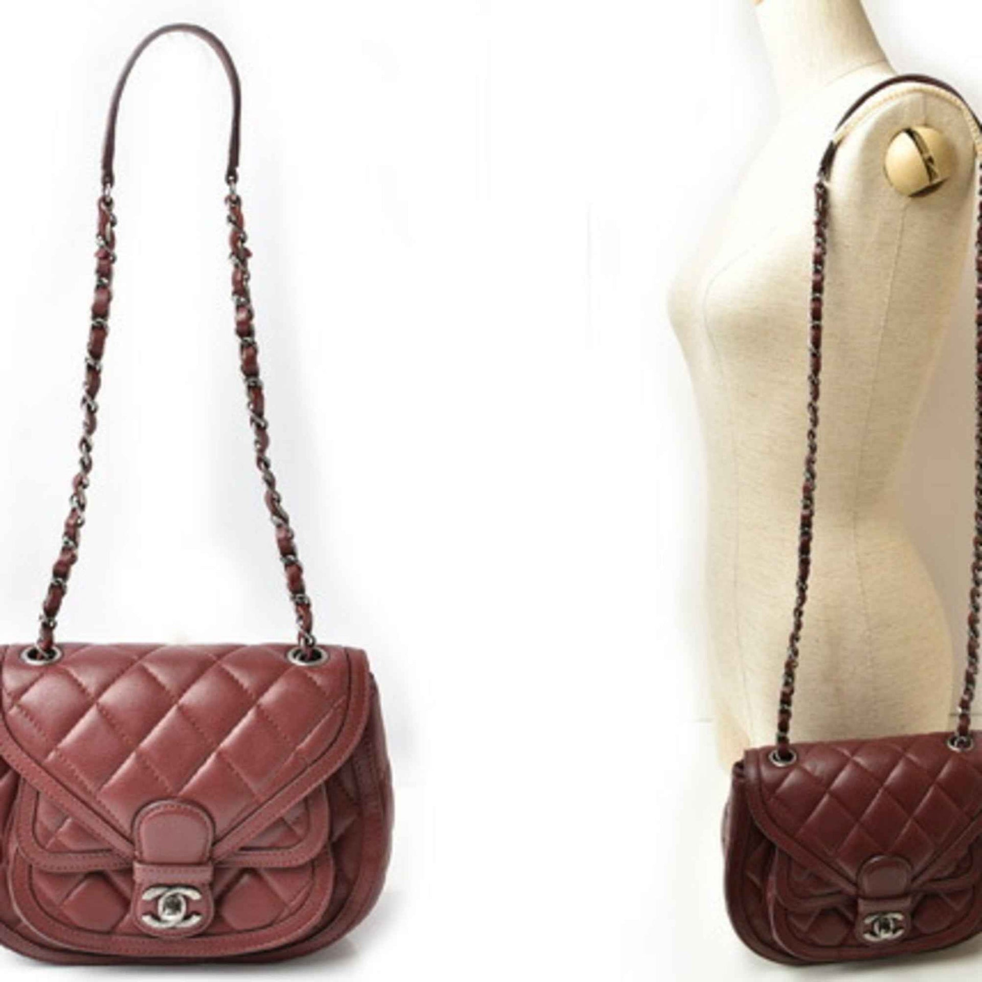 Chanel Chain Shoulder Bag CHANEL Saddle Lambskin Matelasse/Quilted Bordeaux