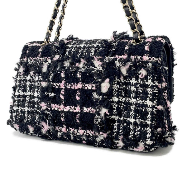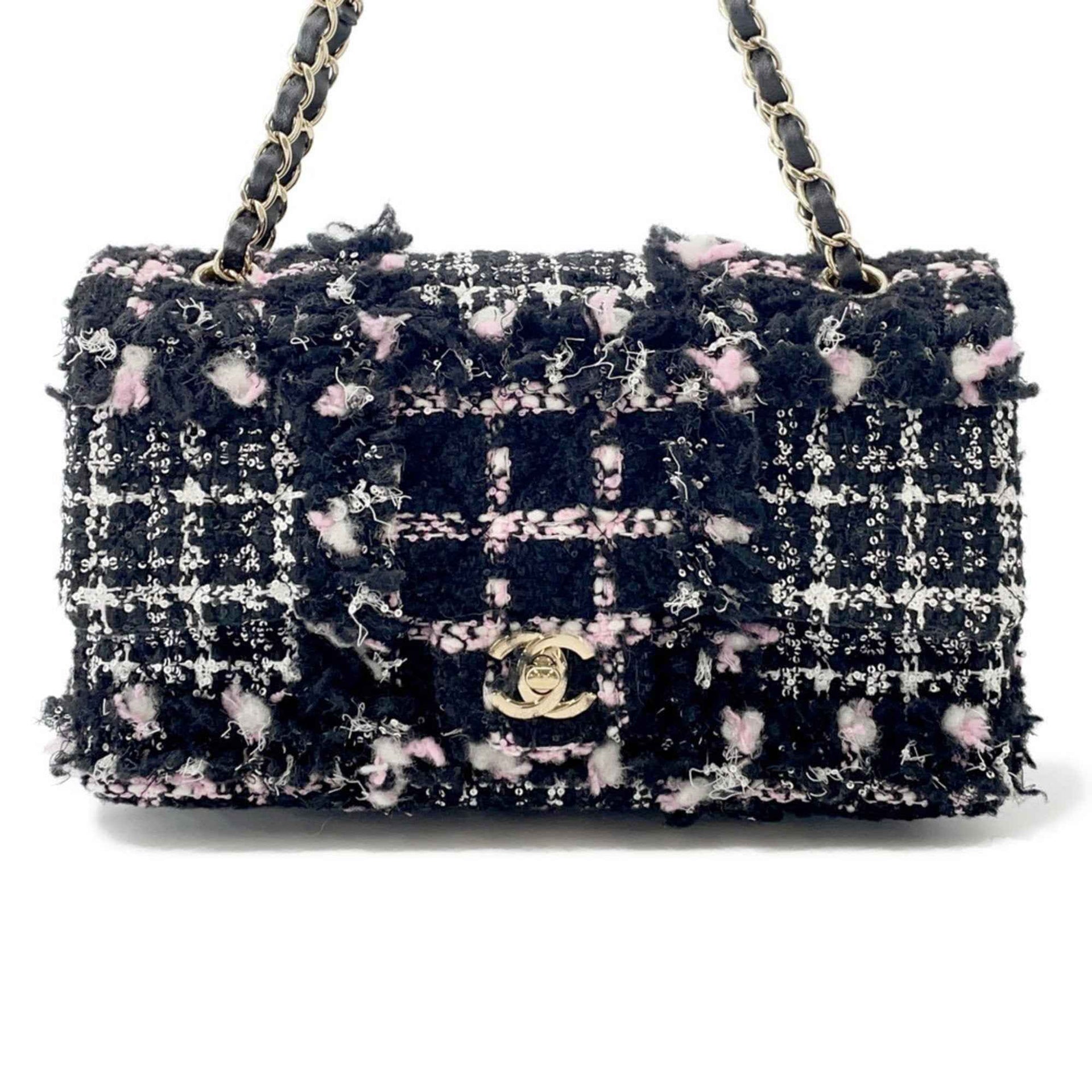 Chanel Chain Shoulder Bag Matelasse 25 Coco Mark Tweed Sequins A01112 CHANEL Black