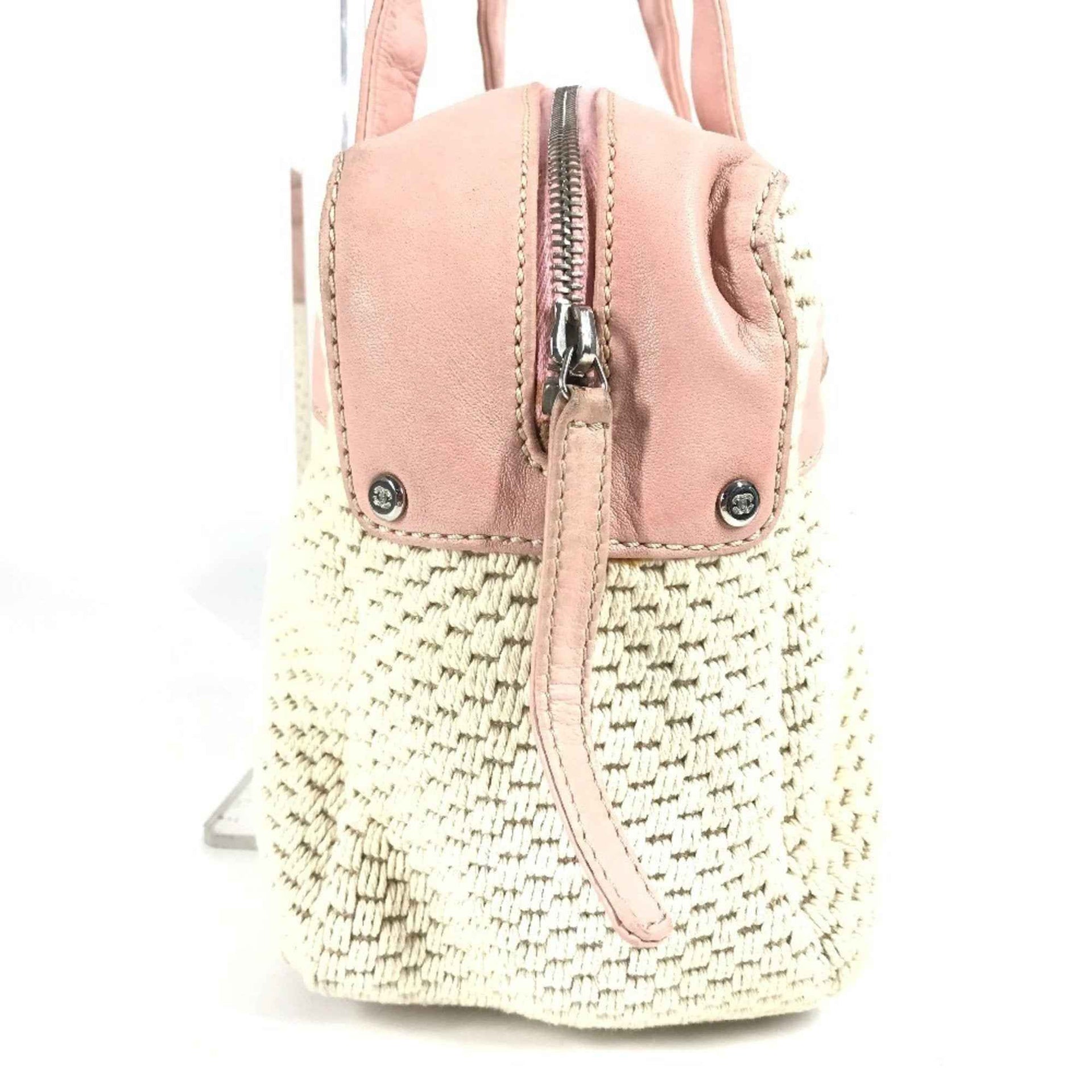 CHANEL Chanel Logo Handbag Mini Boston Bag Shoulder Leather/Canvas Women\'s Pink