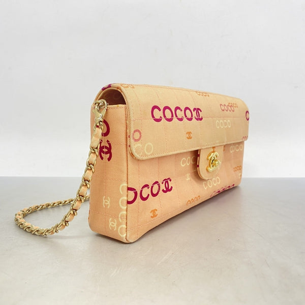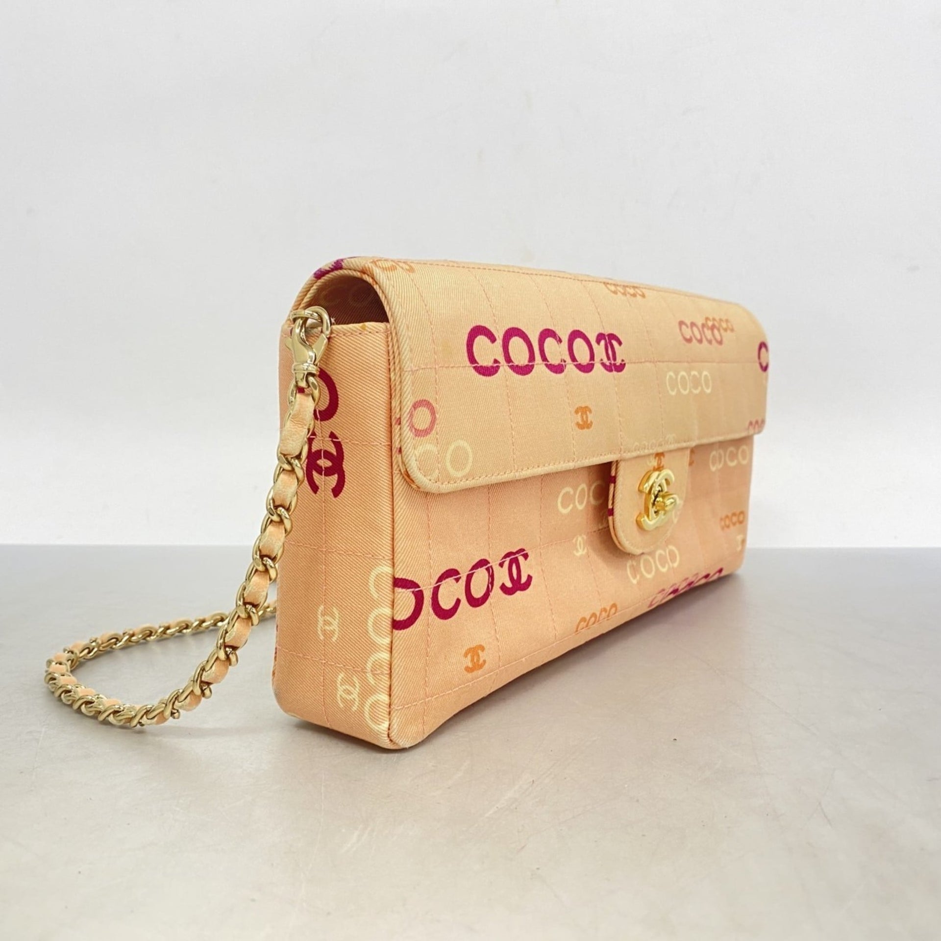 Chanel Chocobar Shoulder Bag with Chain Canvas Pink Women\'s