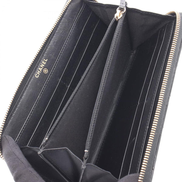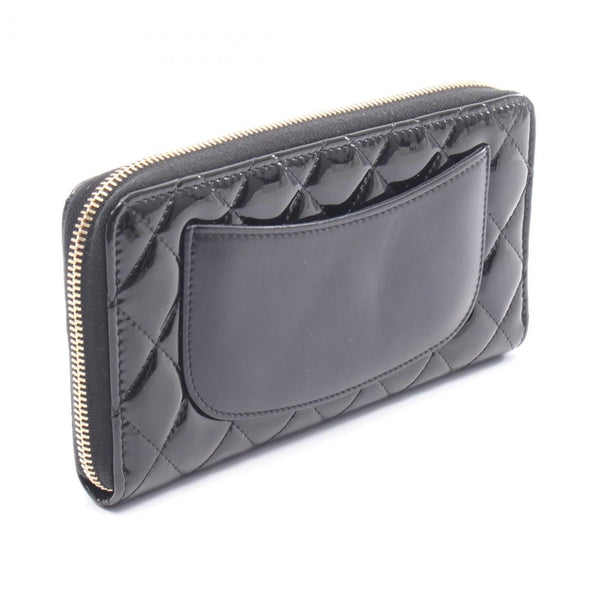 CHANEL Classic Long Zip Wallet Matelasse Round in Patent Leather, Women\'s, Black, AP1594