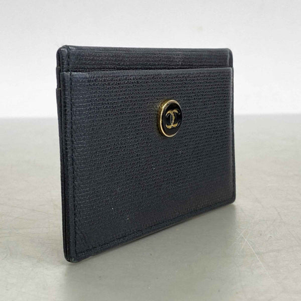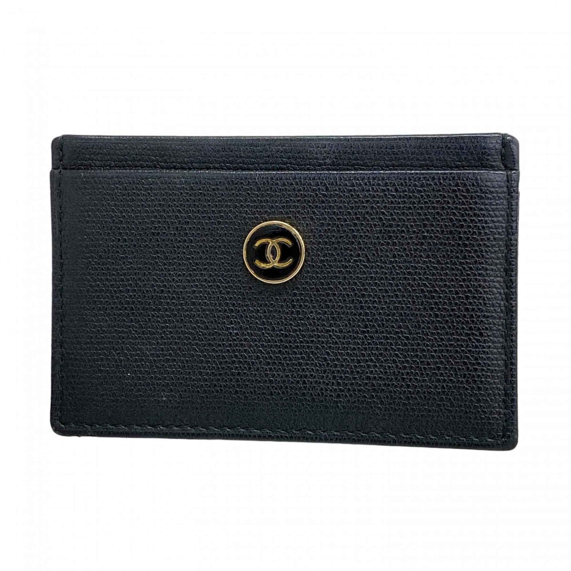 Chanel Coco Button Leather Card Case, Black, Women\'s