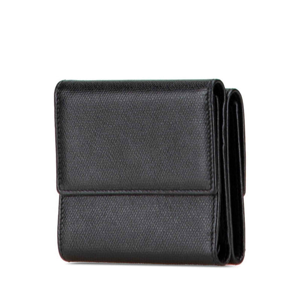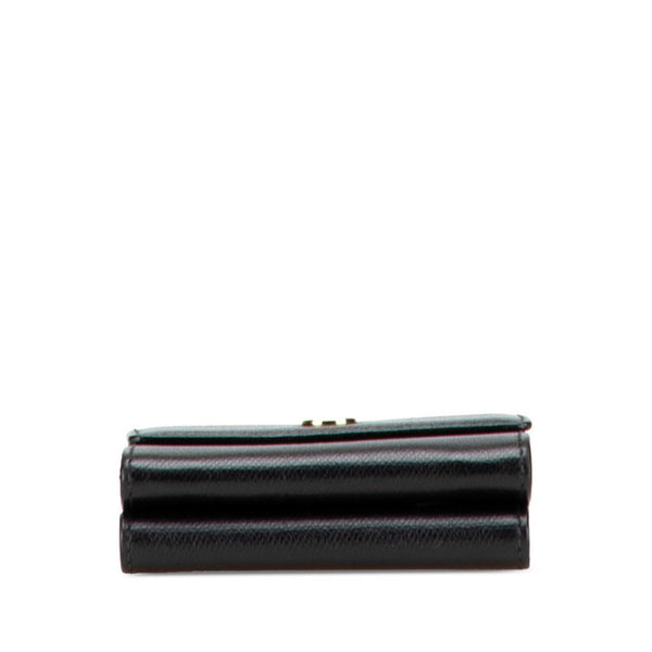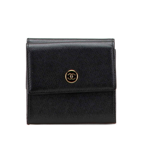 CHANEL Coco Button Tri-fold Wallet Black Leather Women\'s