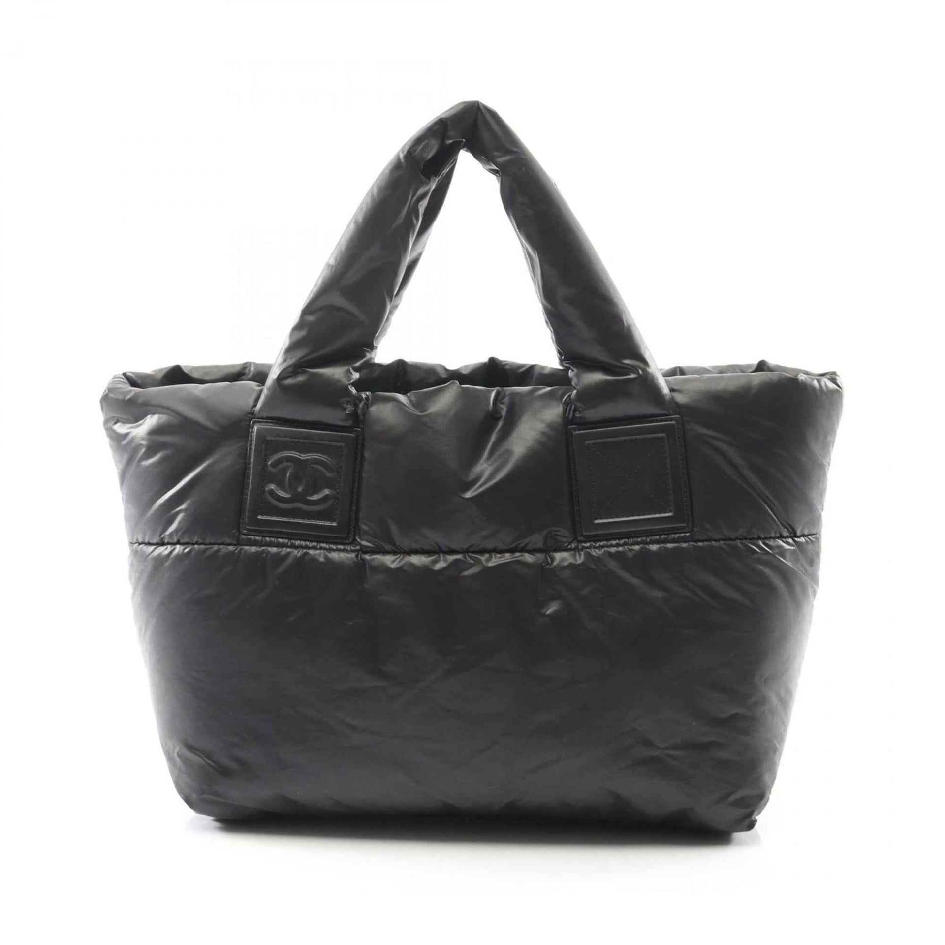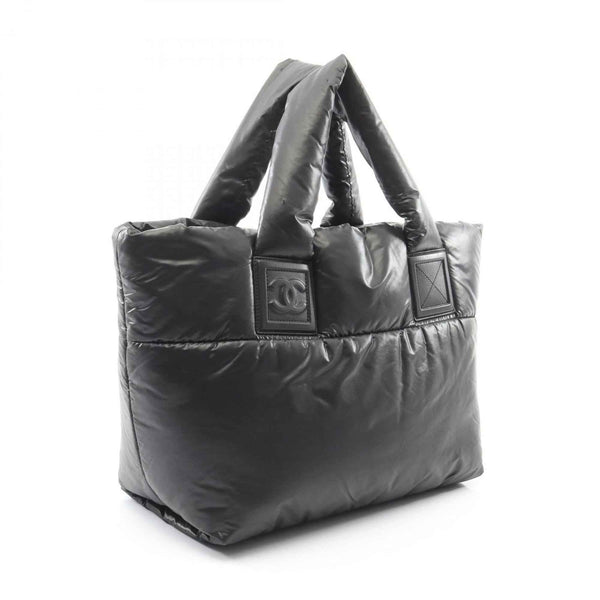 CHANEL Coco Cocoon Small Tote Bag, Nylon, Women\'s, Black/Bordeaux
