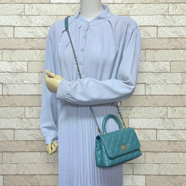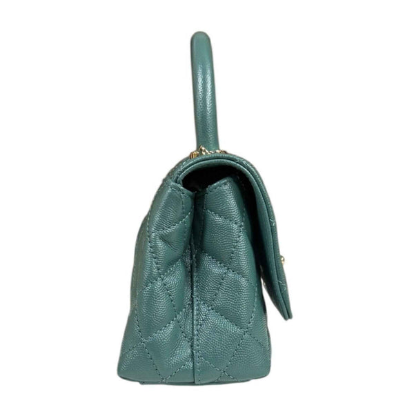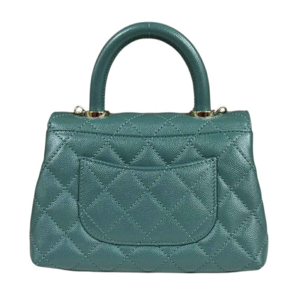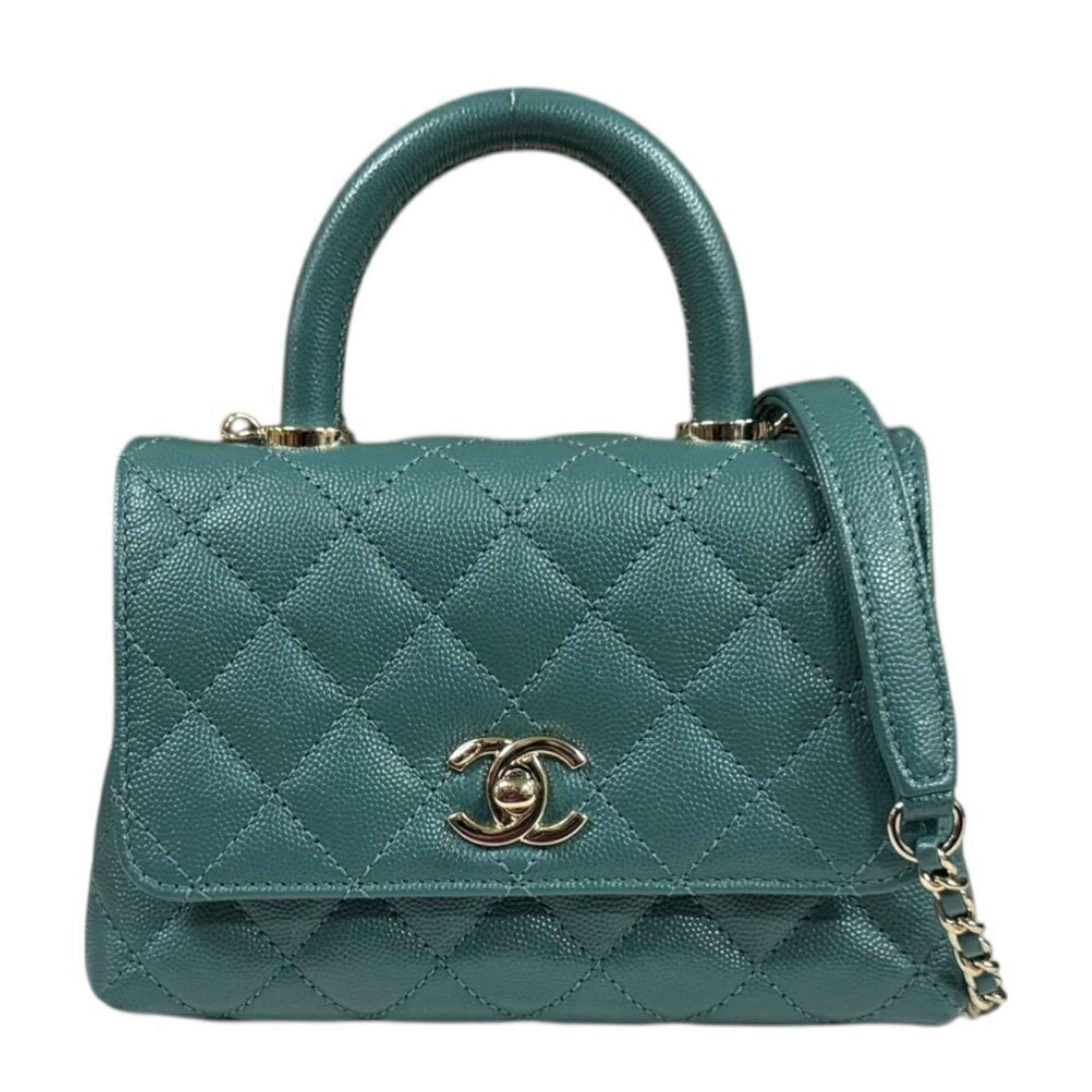 Chanel Coco Handle XXS Matelasse Shoulder Bag in Caviar Skin (AS2215) Green, Women\'s, with 2-Way Chain.