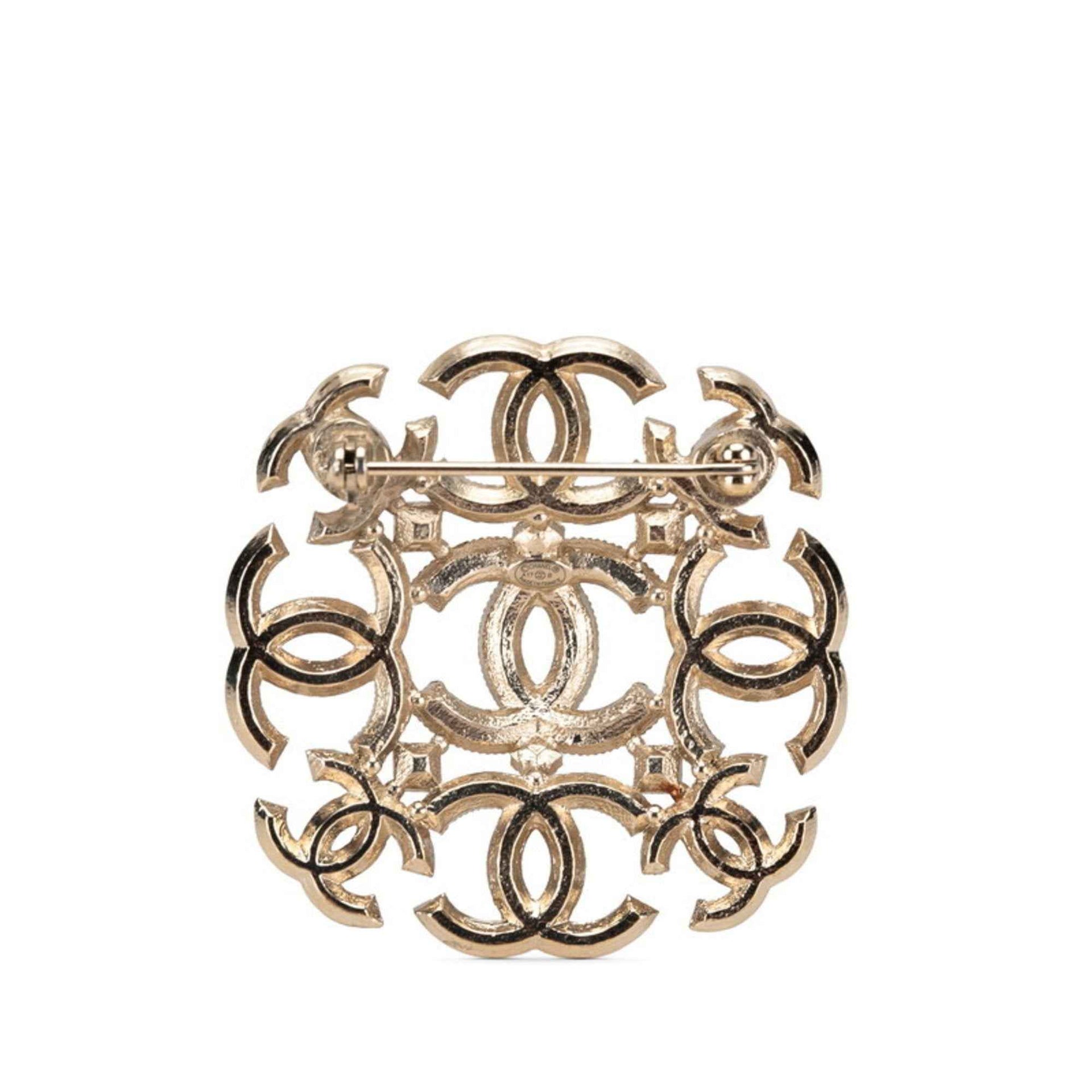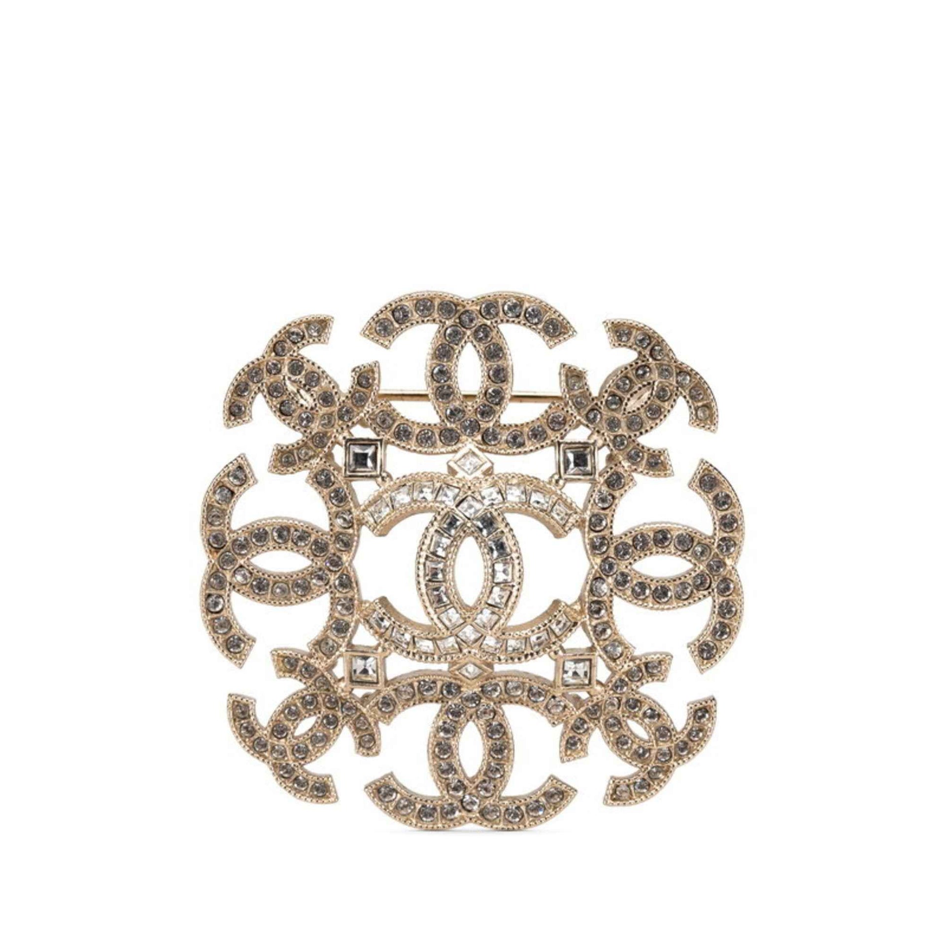 Chanel Coco Mark Brooch, Gold Plated with Rhinestones, Women\'s, CHANEL