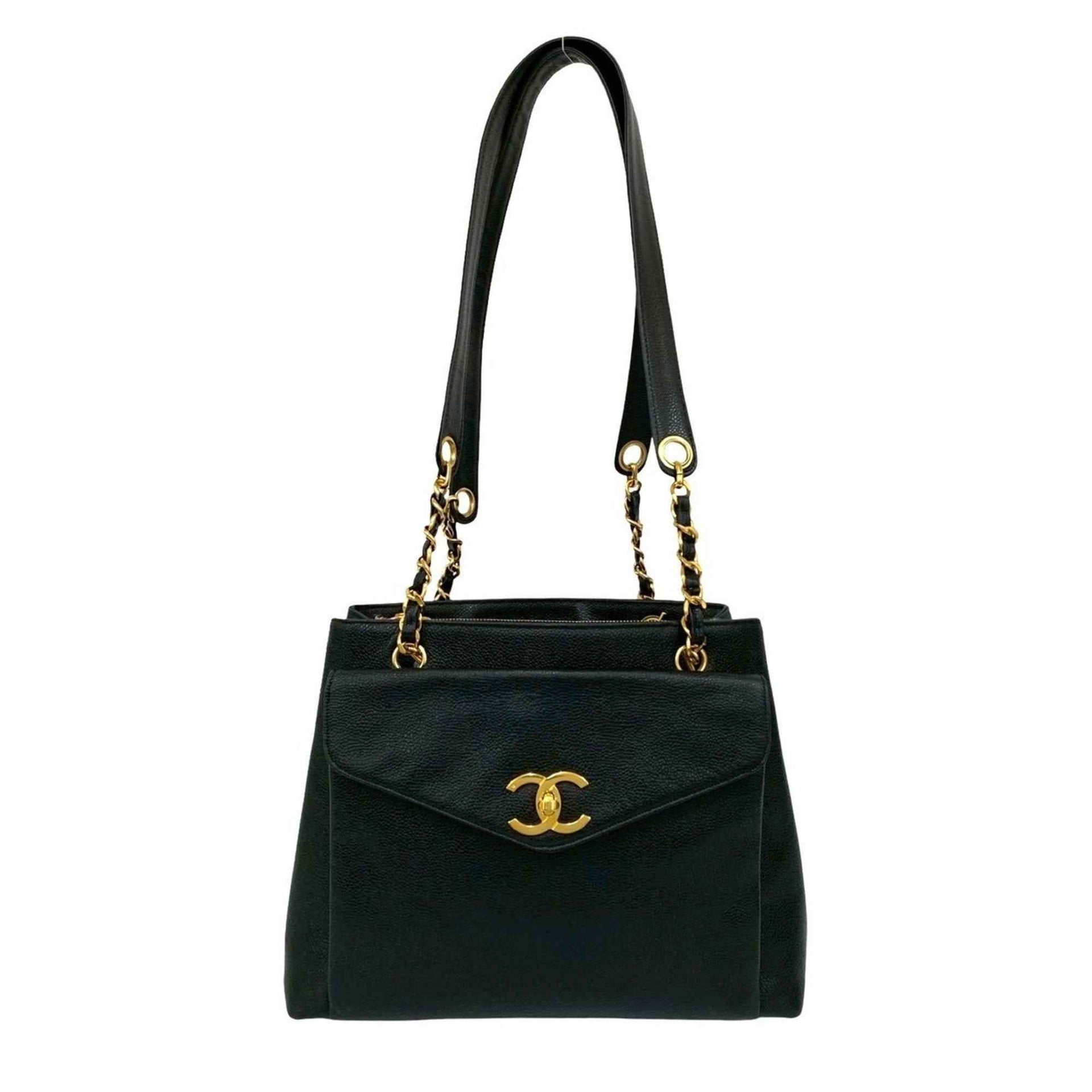 CHANEL Coco Mark Caviar Leather Chain Tote Bag/Semi Shoulder Bag 55549